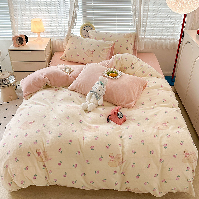 (总)昔可家纺 2024新款印花牛奶绒四件套系列-洛丽塔风,萝莉小兔,小熊烘焙屋,小熊玩偶屋