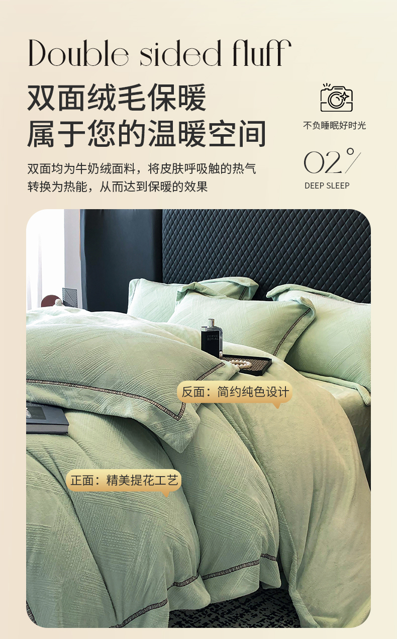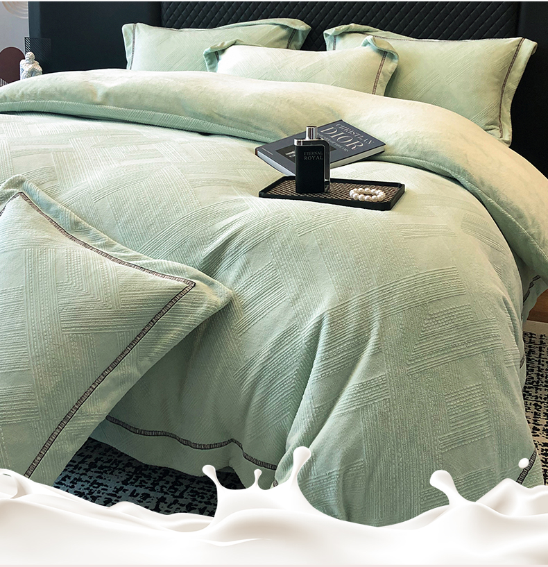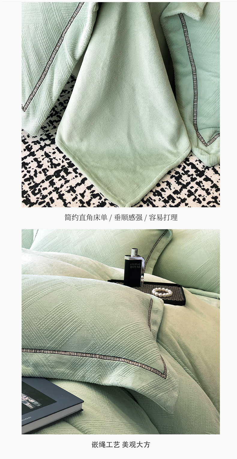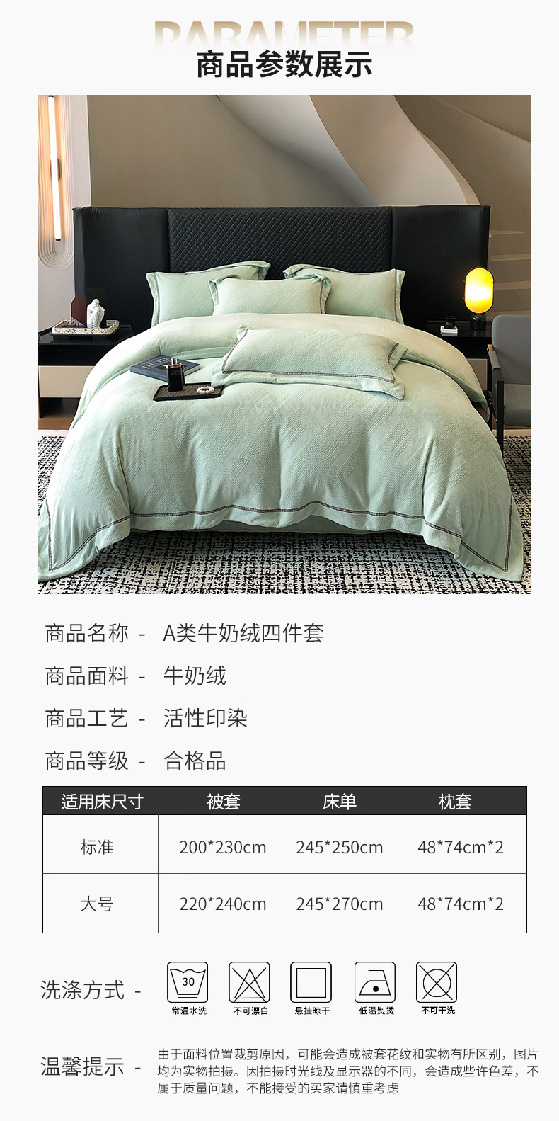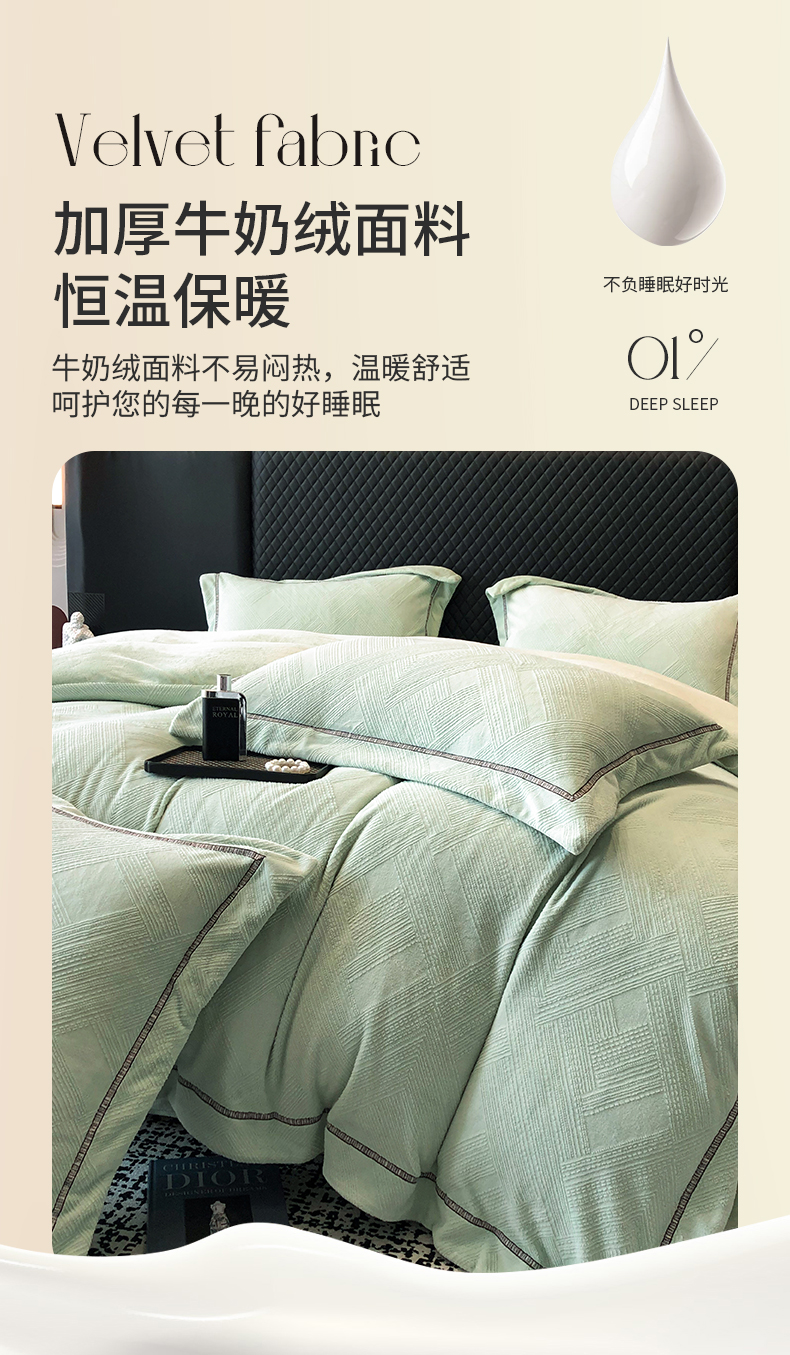 商品名称:家居1号 2024新款230克全消光牛奶绒立体烂花四件套-奥地利 奥地利-果绿