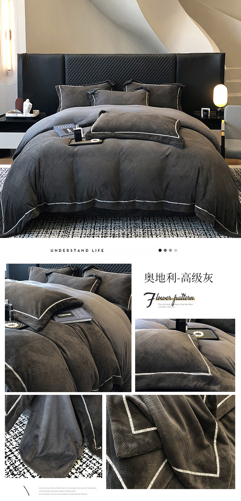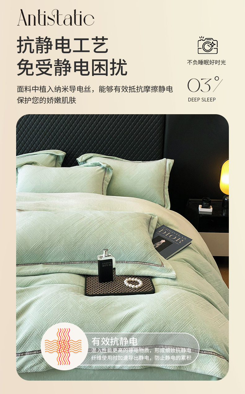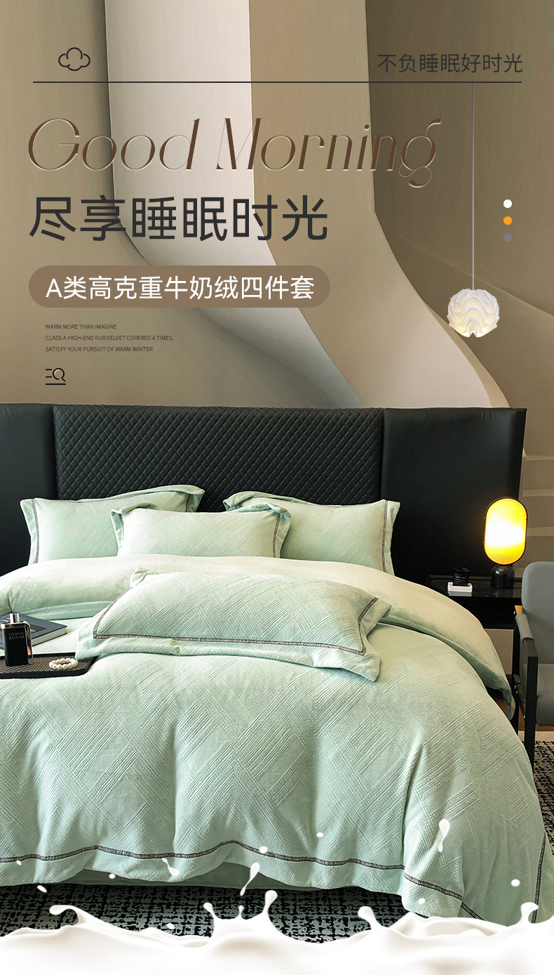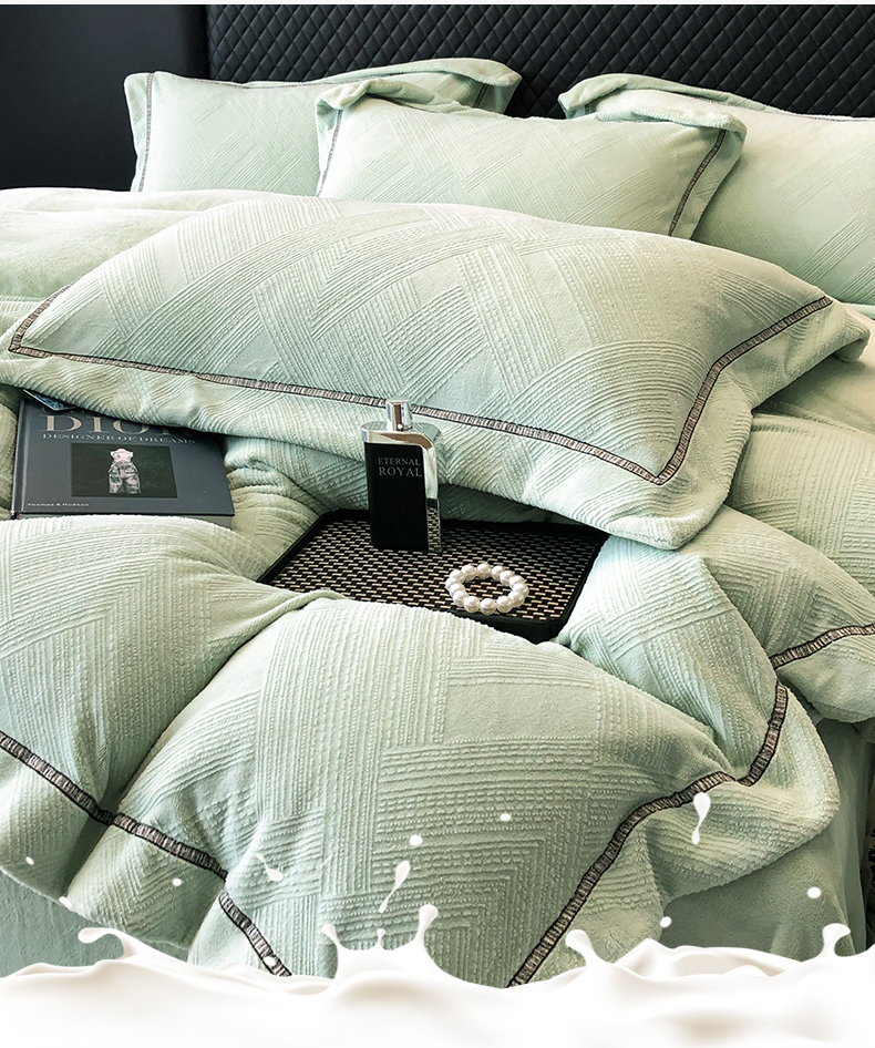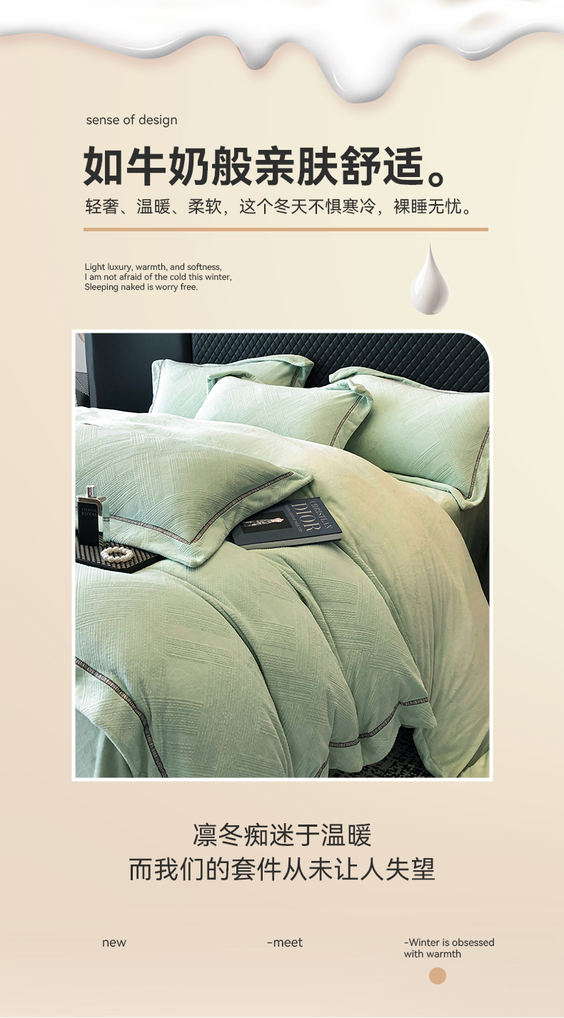 商品名称:家居1号 2024新款230克全消光牛奶绒立体烂花四件套-奥地利 奥地利-果绿