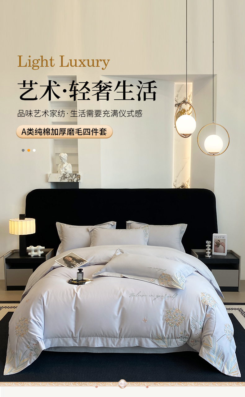 (总)家居1号家纺 2025新款全消光牛奶绒刺绣圣玛丽四件套,圣玛丽-粉豆沙,圣玛丽-果绿,圣玛丽-晴蓝,圣玛丽-绅士灰,圣玛丽-香槟金