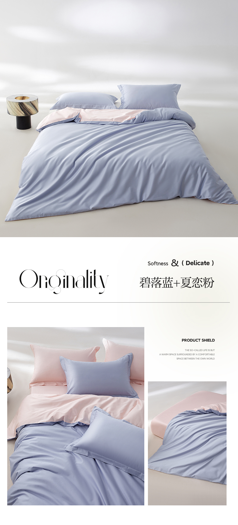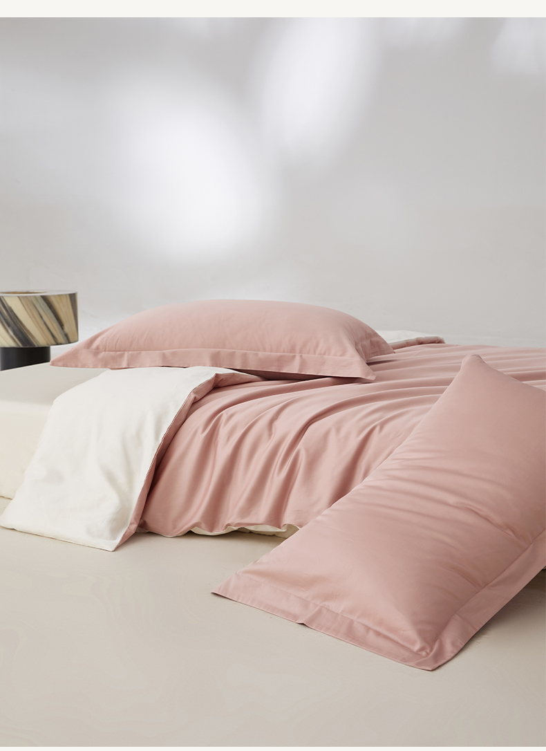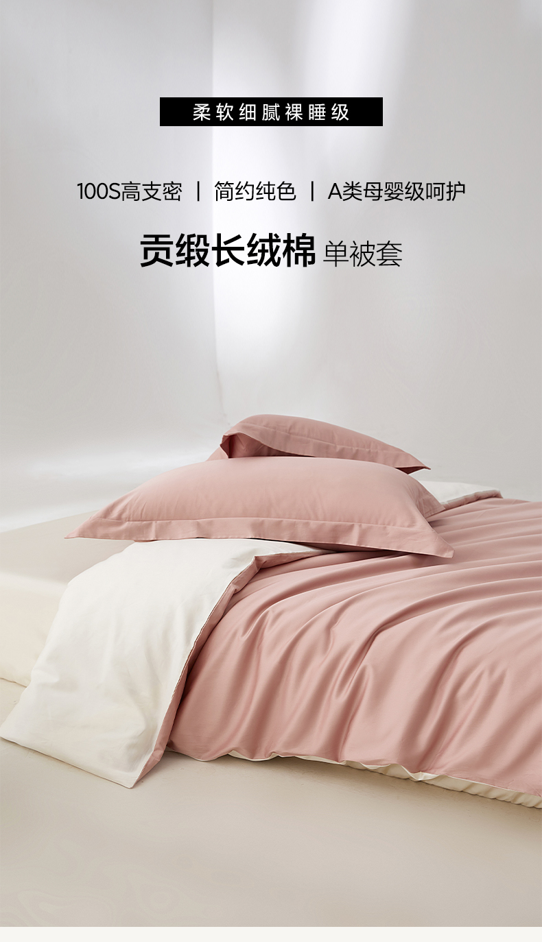 • 91家纺网 家纺一手货源 找家纺 轩和家居 2024新款A类50S贡缎长绒棉单被套系列 复古粉+浅香槟