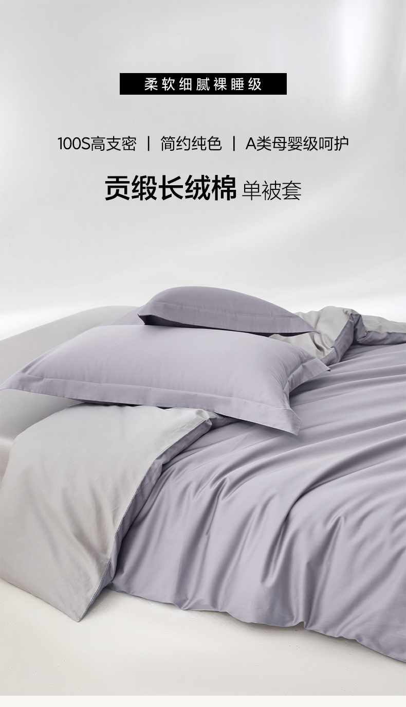 当前位置: 91家纺网 > 商品网购 > 床上用品 > 被套 > 轩和家居 2024新款A类50S贡缎长绒棉单被套系列 仙仙紫+雅士灰