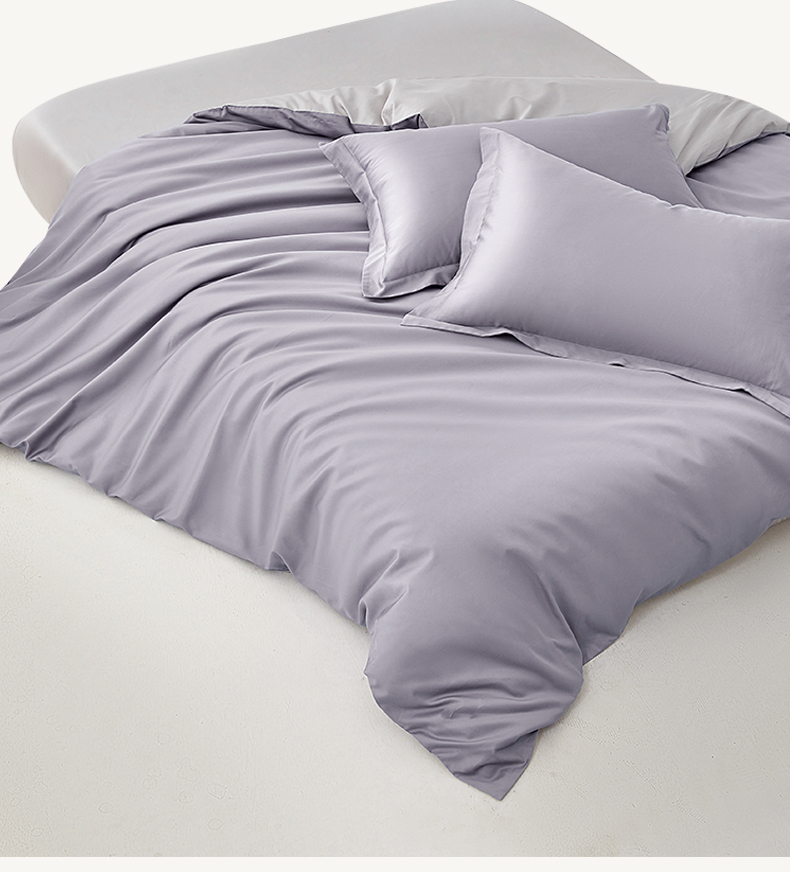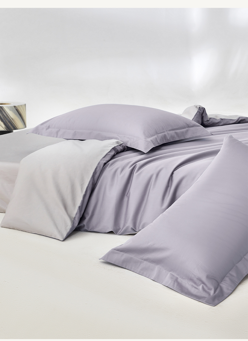 • 91家纺网 家纺一手货源 找家纺 轩和家居 2024新款A类50S贡缎长绒棉单被套系列 仙仙紫+雅士灰
