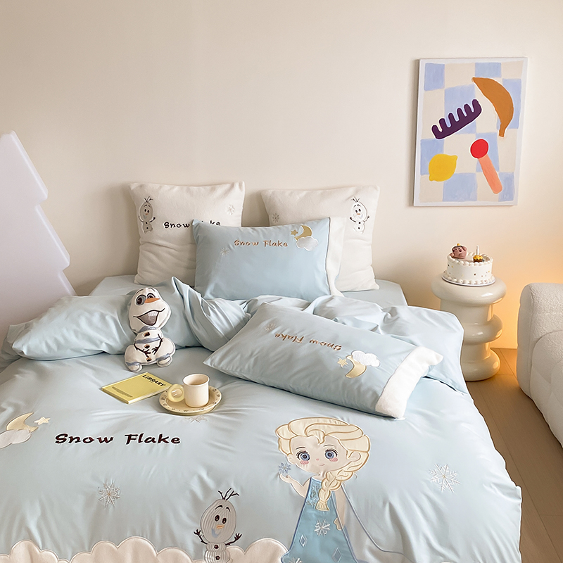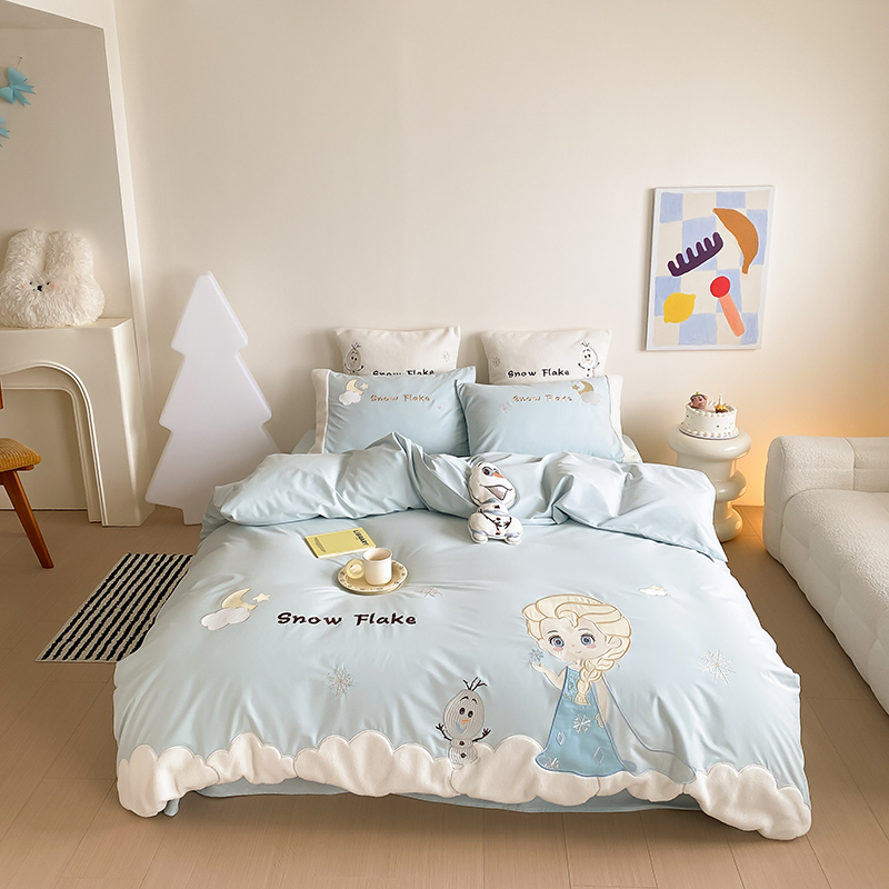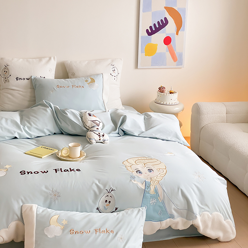 (总)星野 2025新款高克重牛奶绒贴布绣四件套-冰川企鹅,冰川企鹅