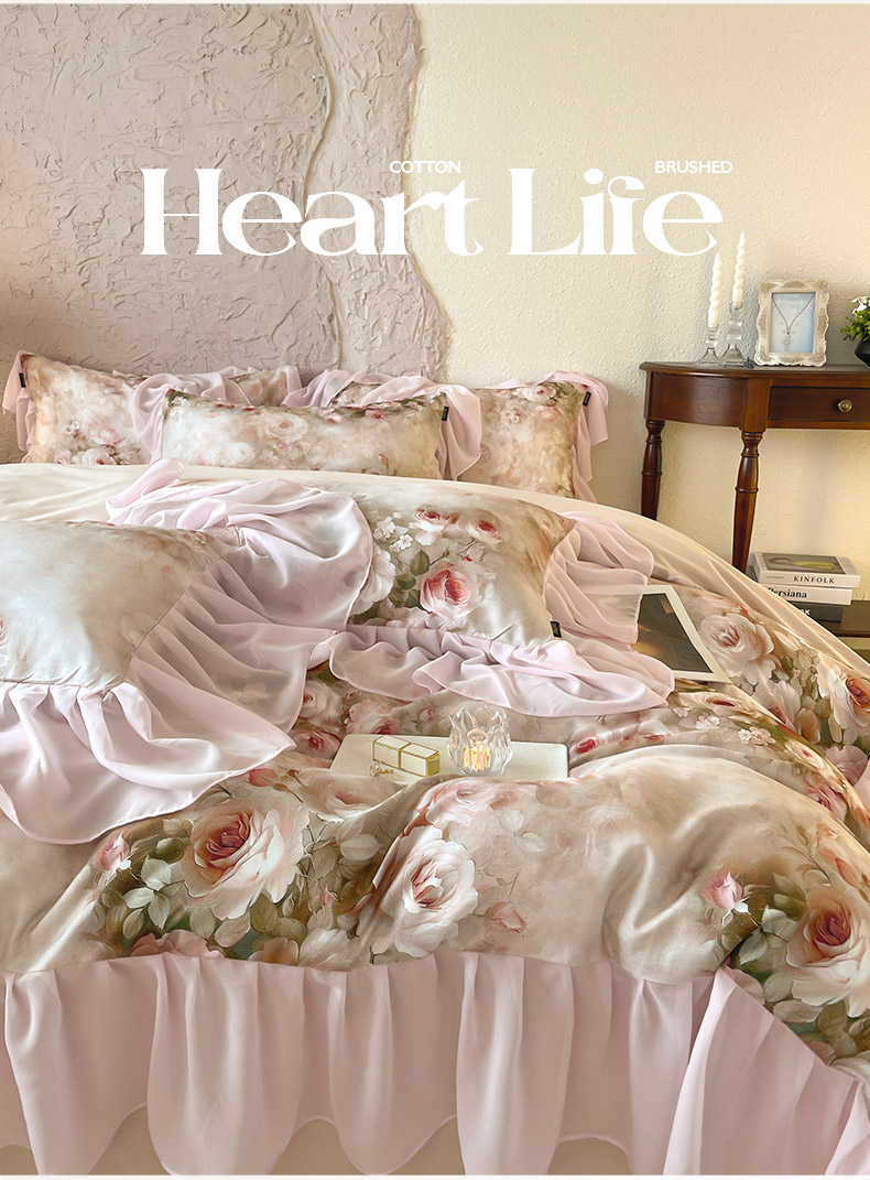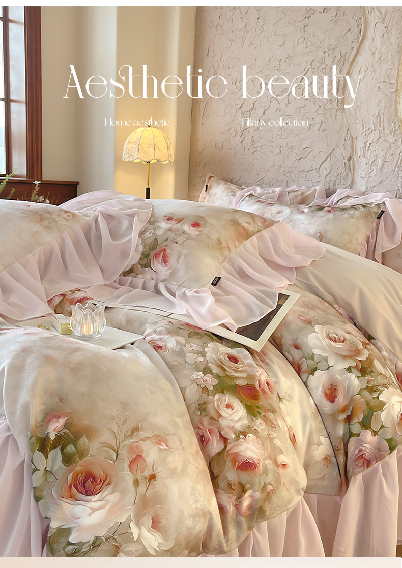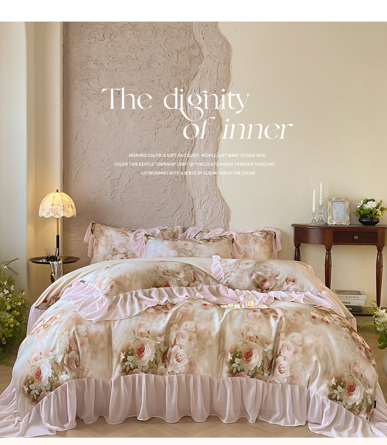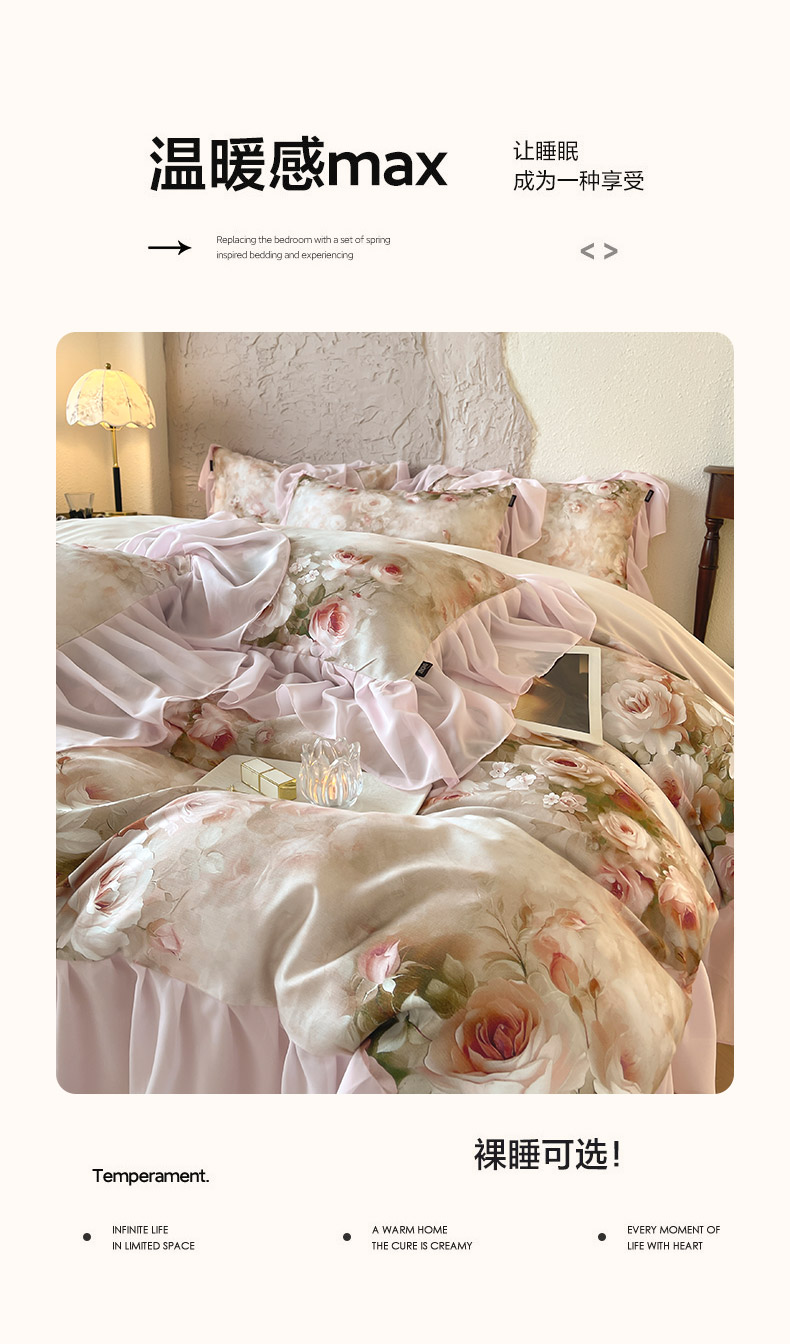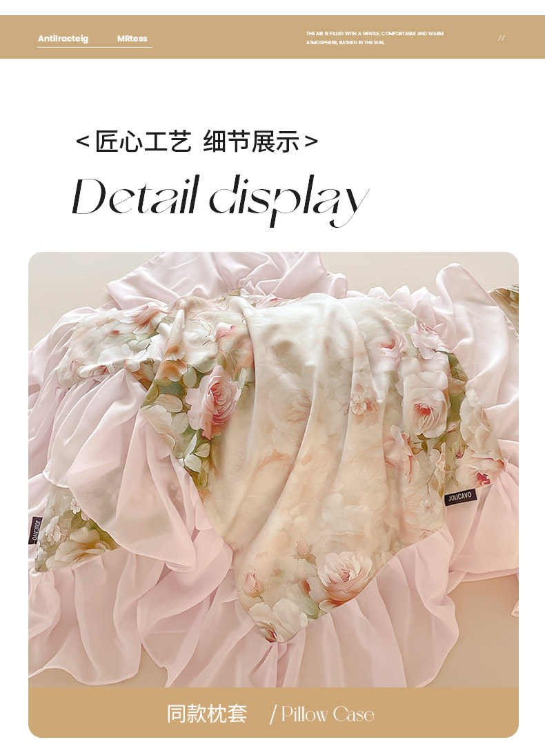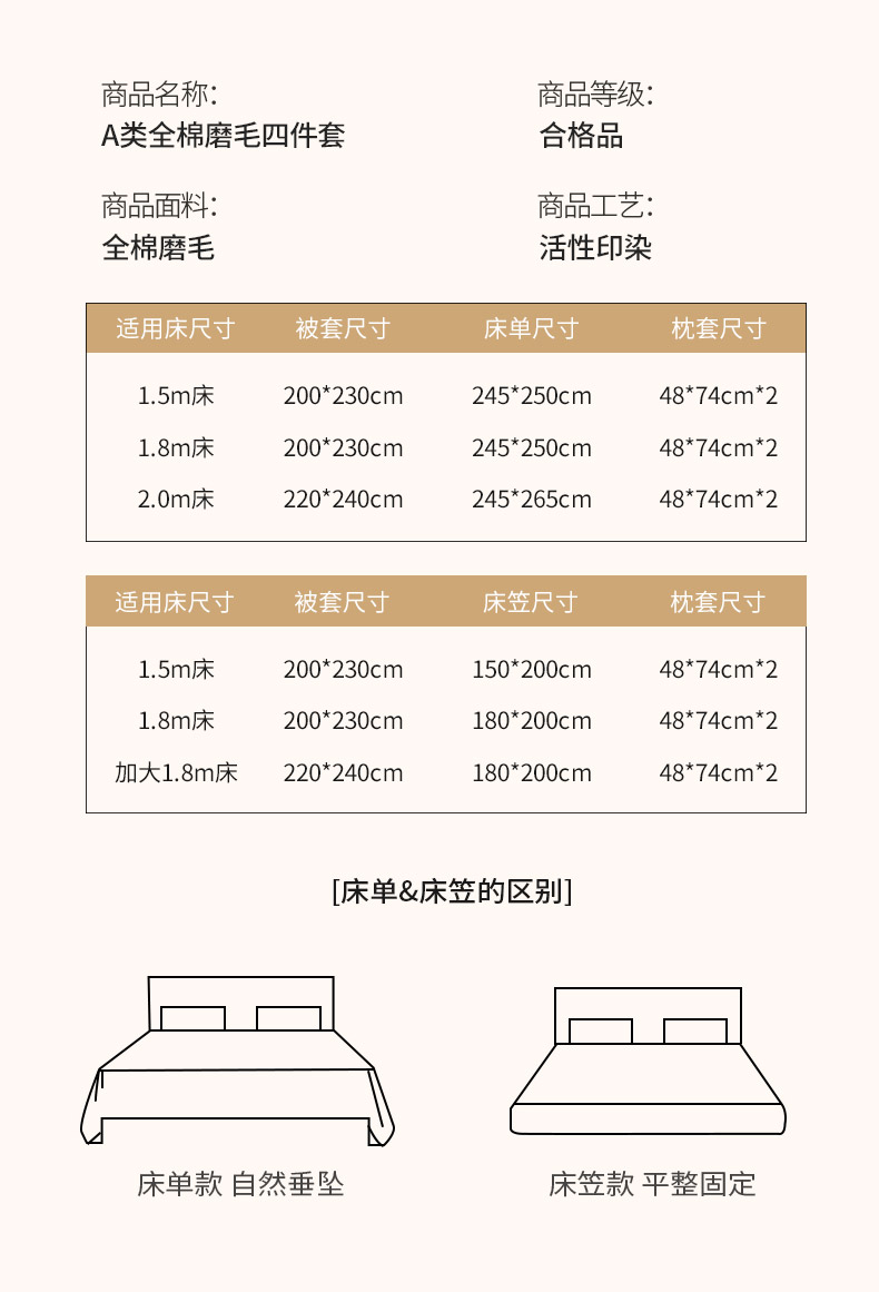 商品名称:A类全工艺全棉磨毛四件套纯棉雪纺纱拼接浪漫法式风加厚保暖床单被套秋冬床上用品 奈雪粉