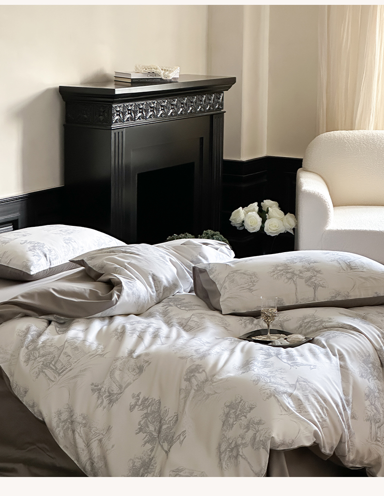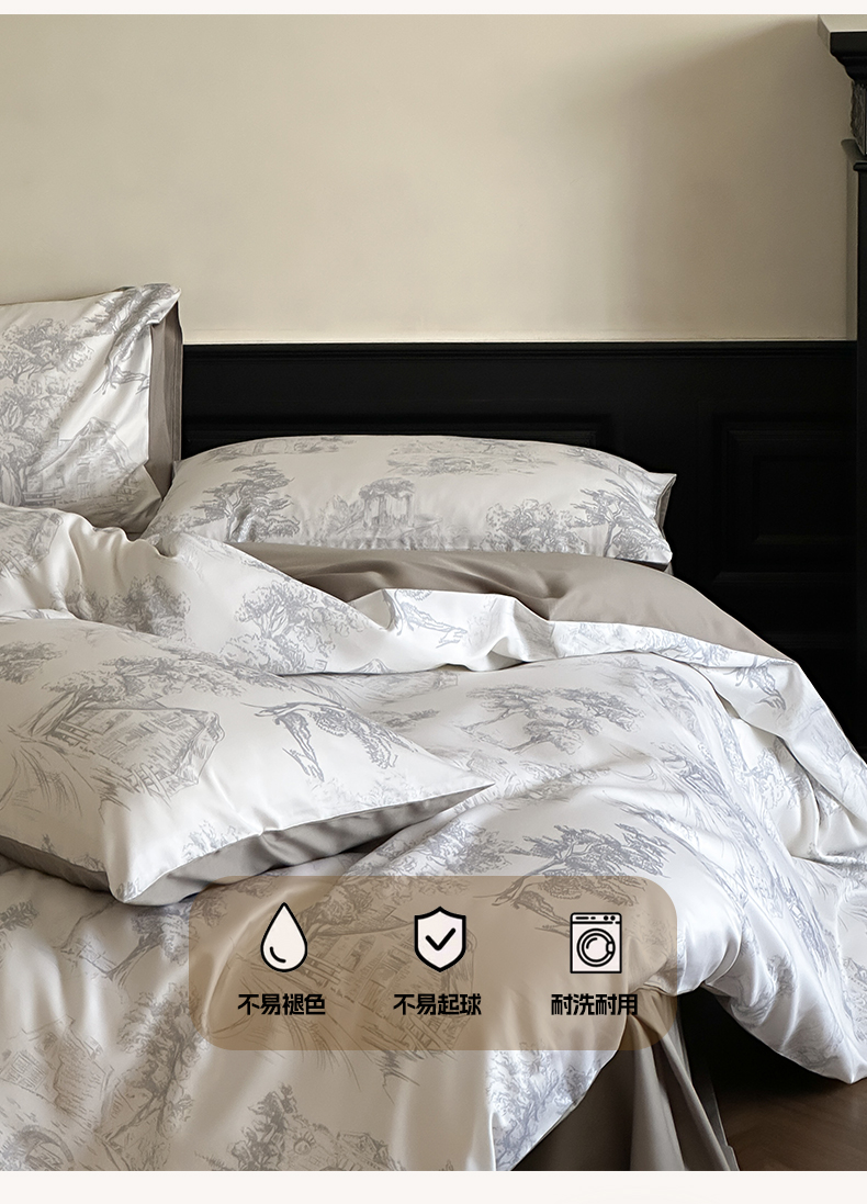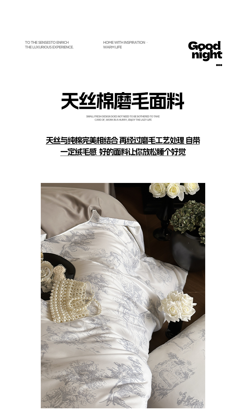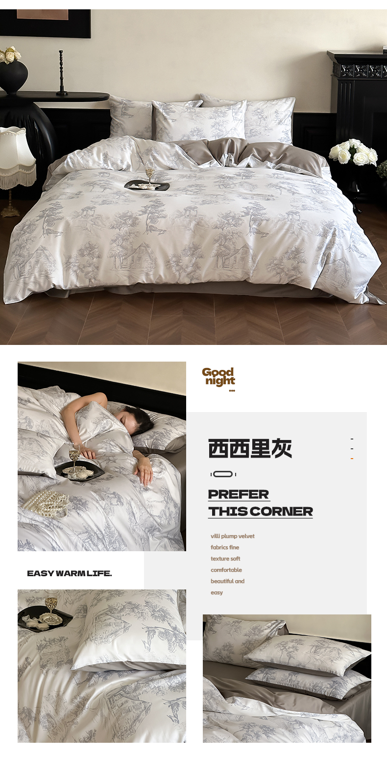 商品名称:三味舒屋 2024新款云柔花艺天丝棉磨毛四件套 西西里灰