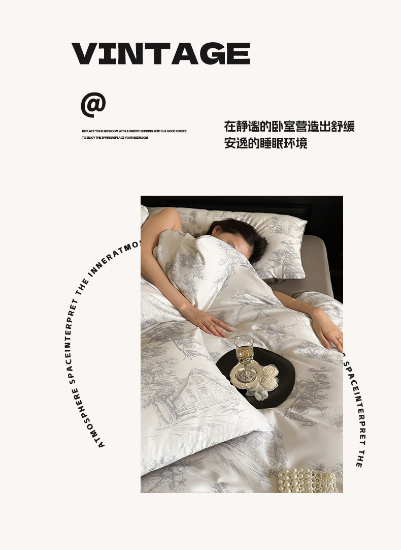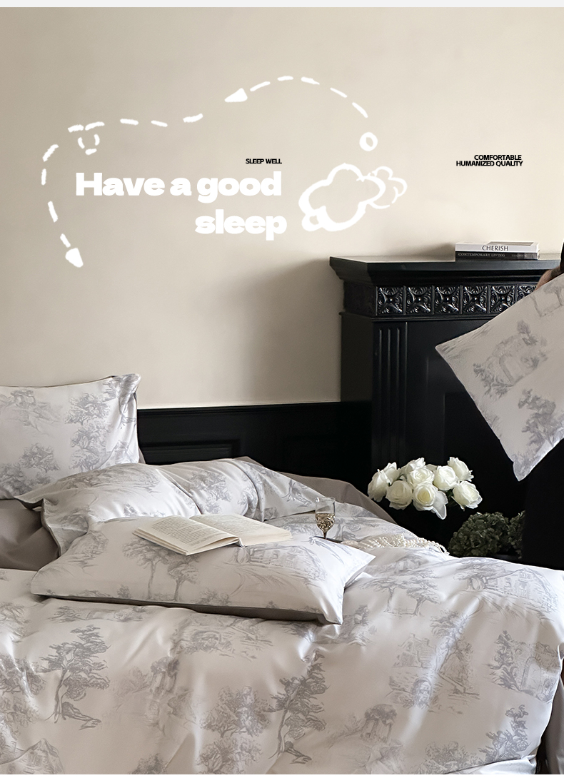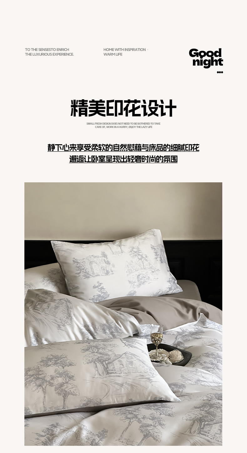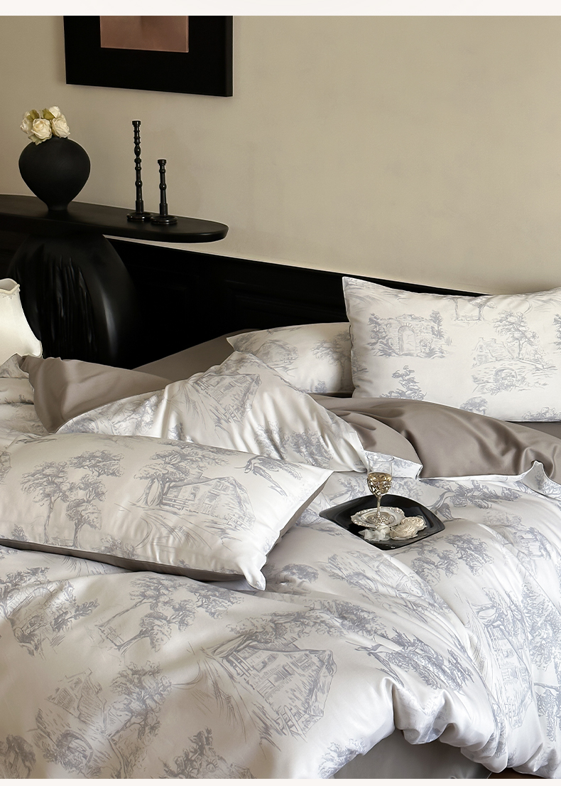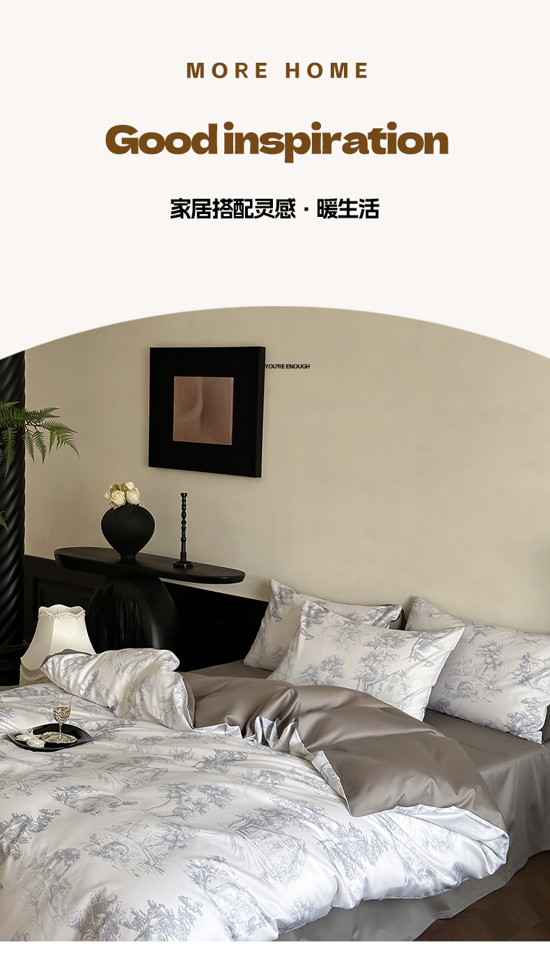 商品名称:三味舒屋 2024新款云柔花艺天丝棉磨毛四件套 西西里灰