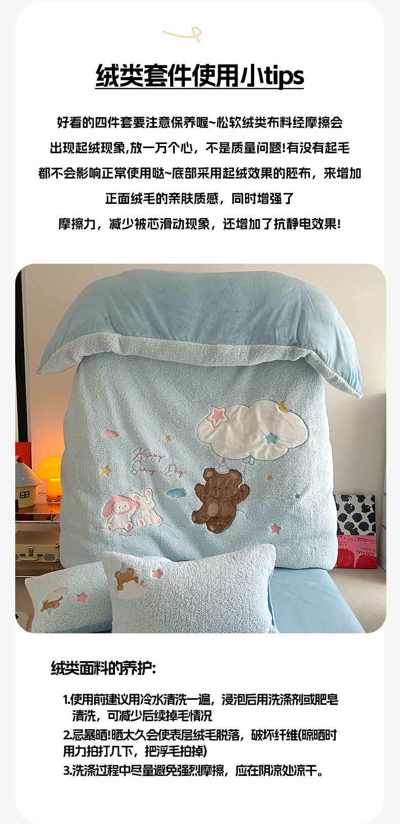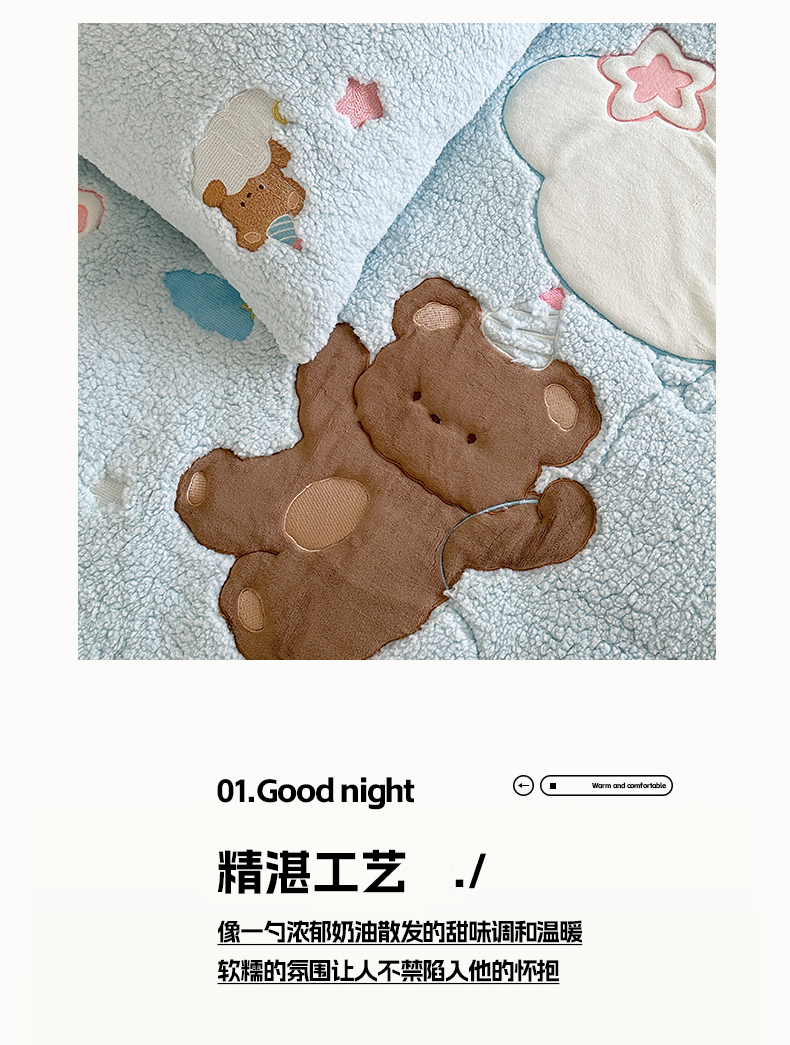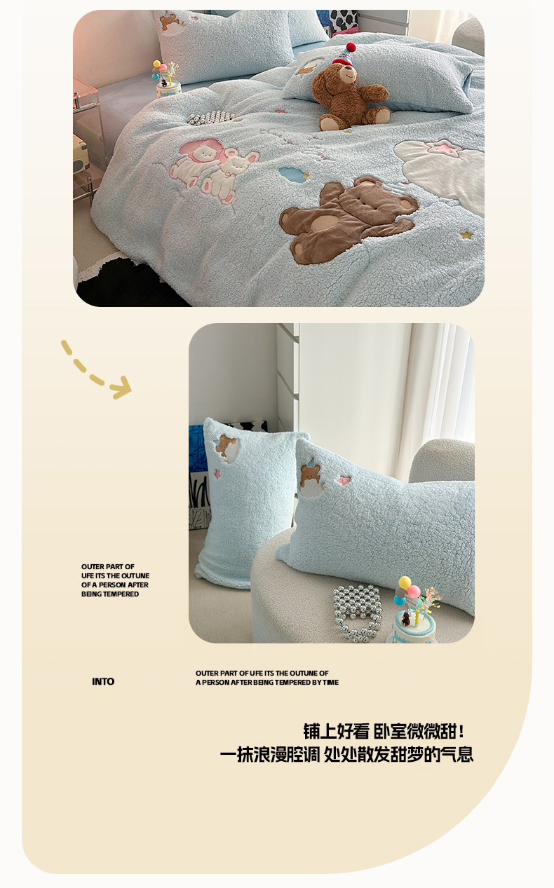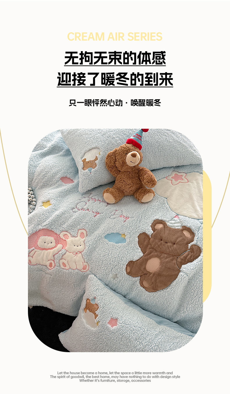商品名称:眠屿家纺 2024新款羊羔绒贴布绣四件套 云朵熊