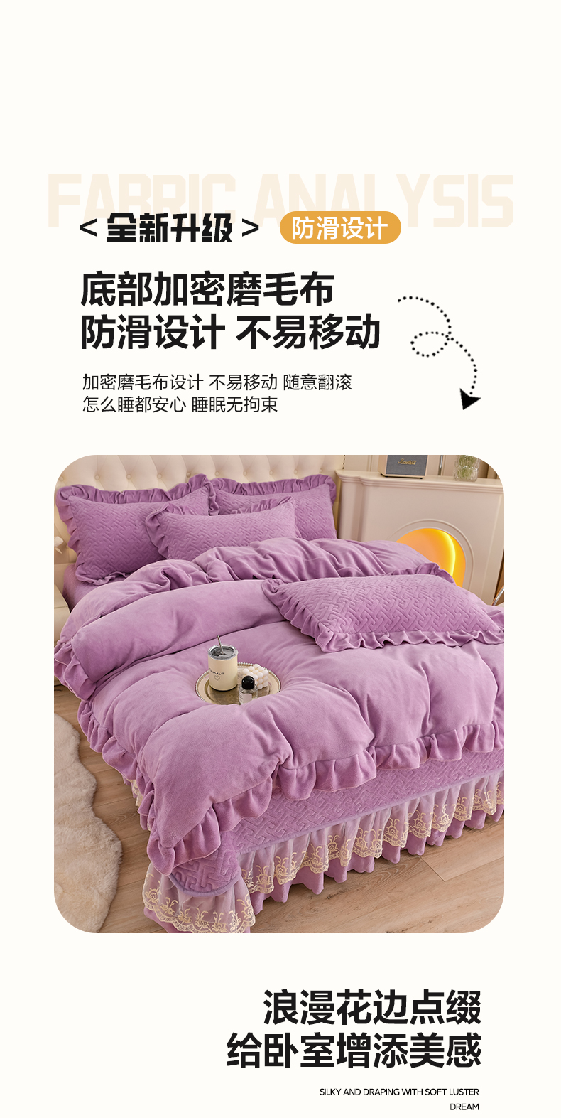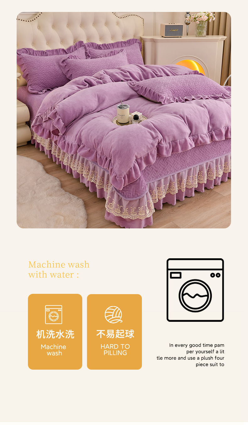 商品名称:畅畅家纺 2024新款简约纯色牛奶绒夹棉床盖四件套 倾城-紫