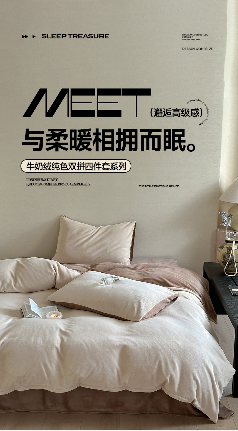 商品名称:(总)寐眠 2024新款牛奶绒纯色双拼四件套