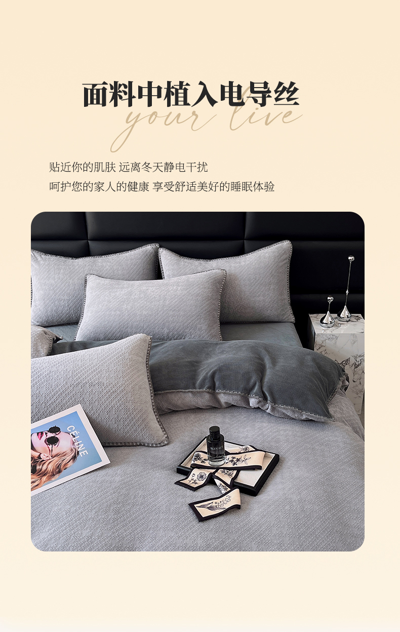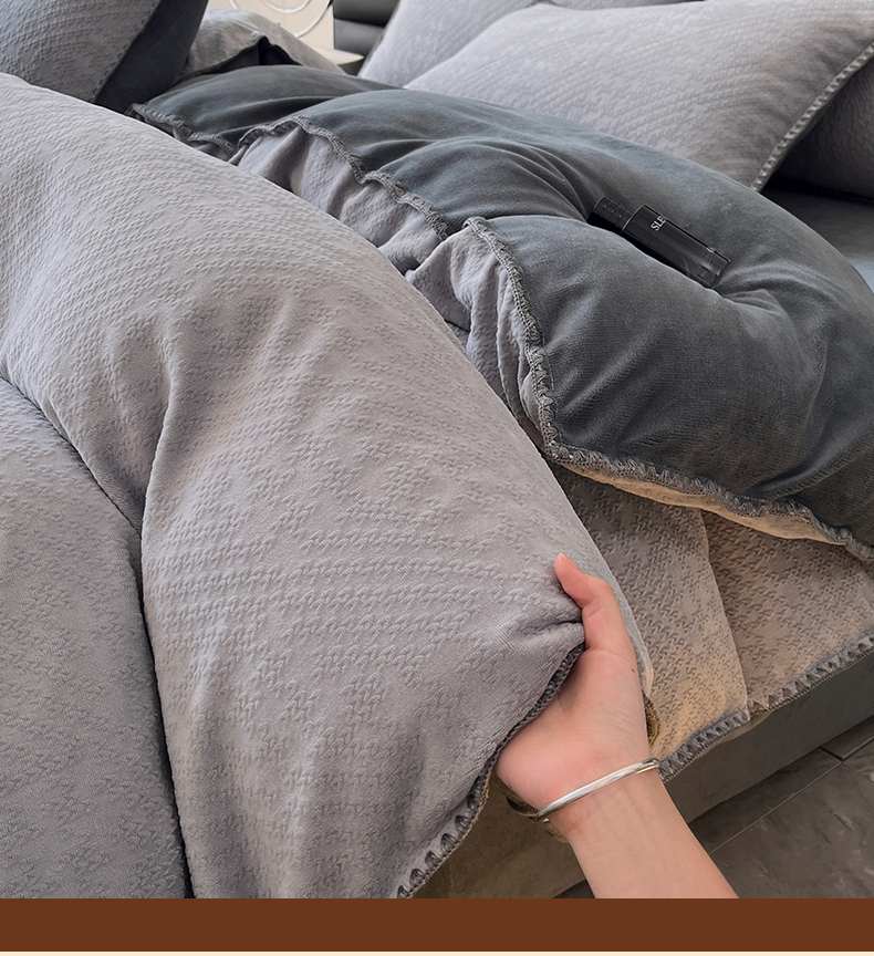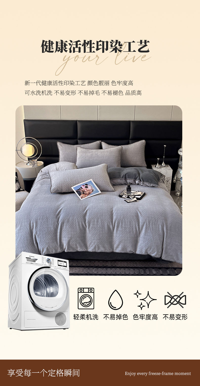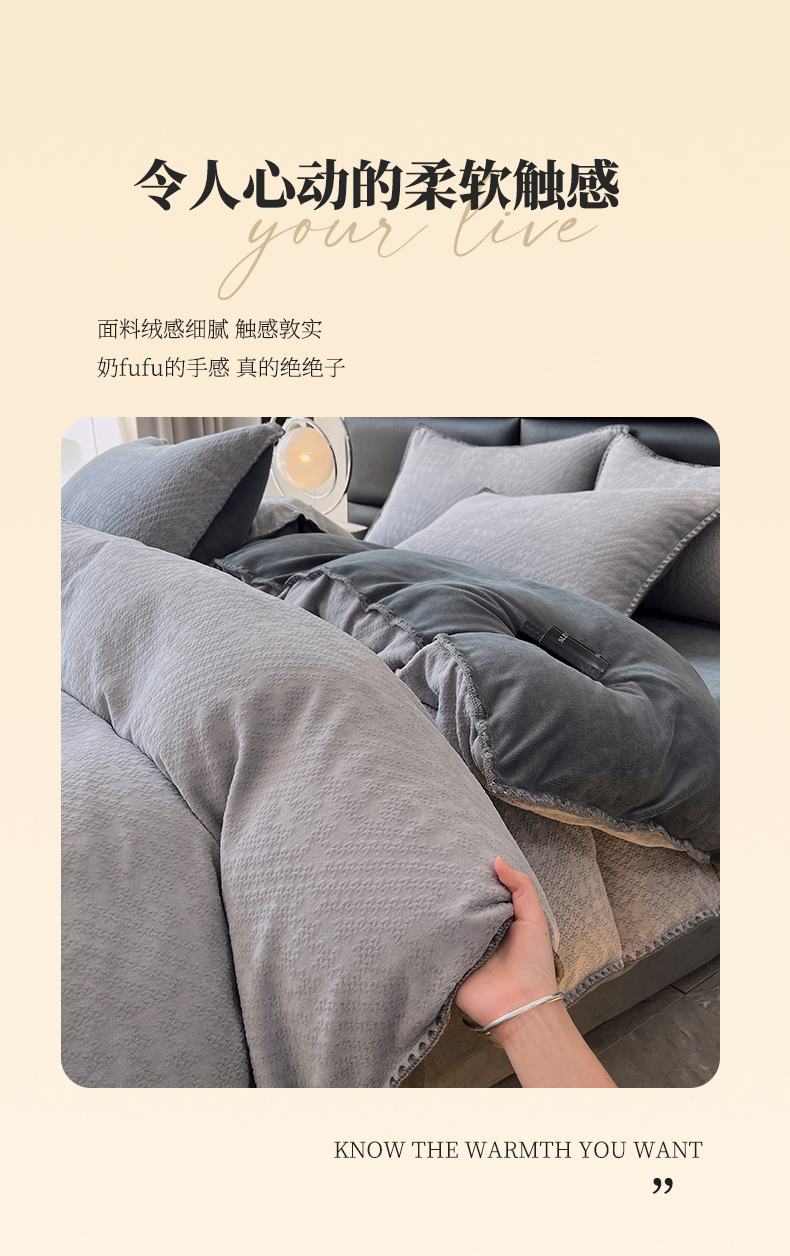 (总)菡宝 2025新款简约良品风牛奶绒四件套-查尔斯系列 支持定做定制尺寸,查尔斯-灰,查尔斯-卡其,卡伦