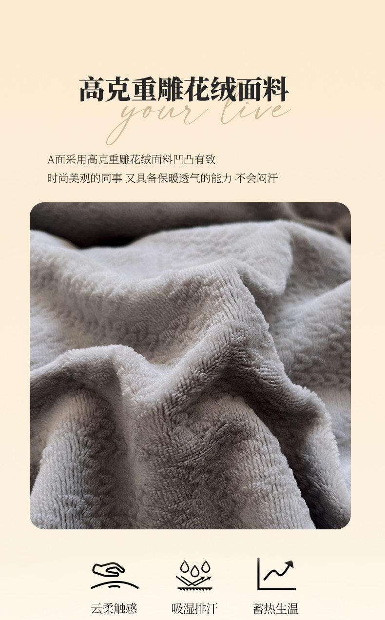 商品名称:菡宝 2024新款贝壳边无印风230g雕花绒单被套 千鸟-灰