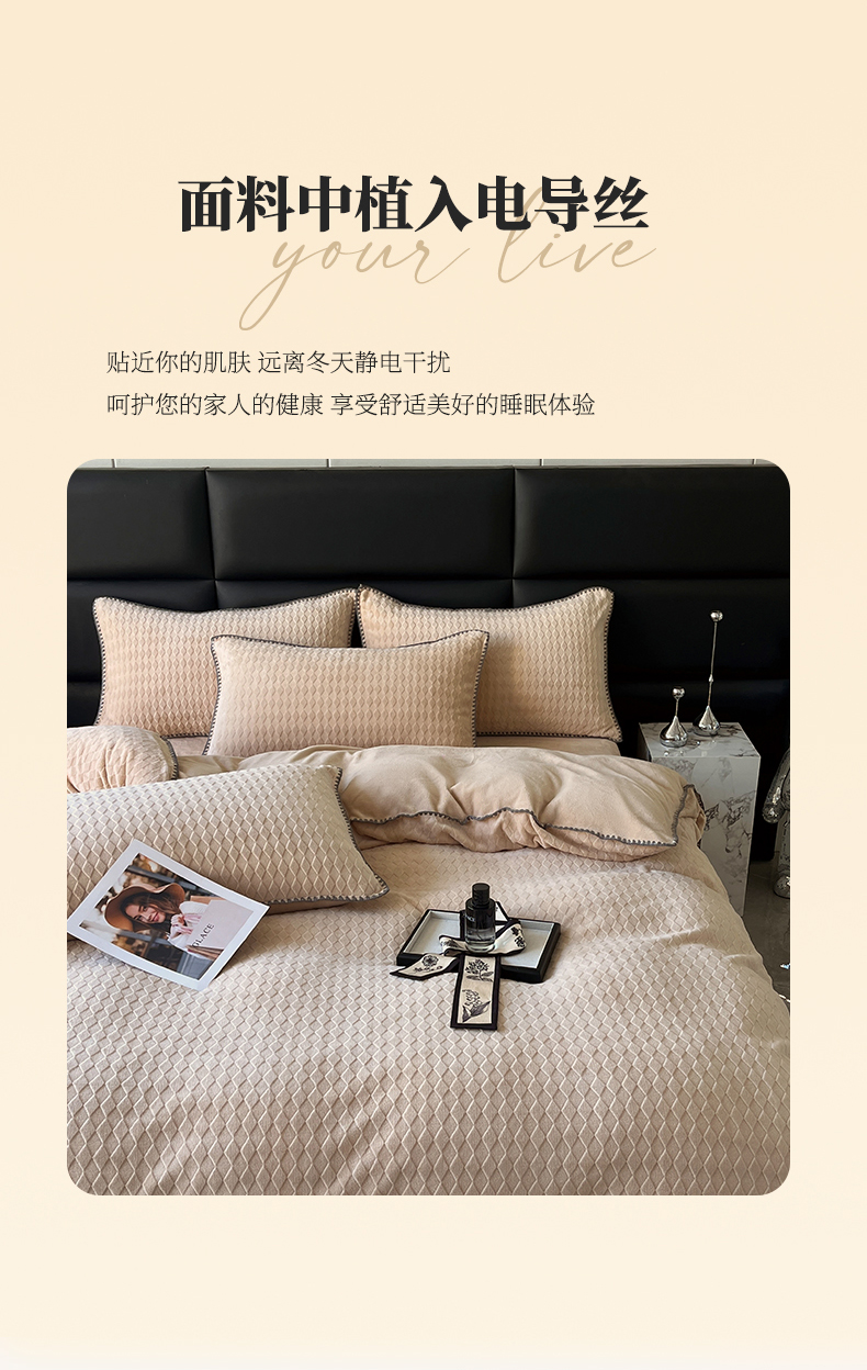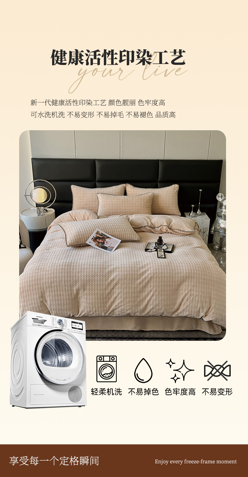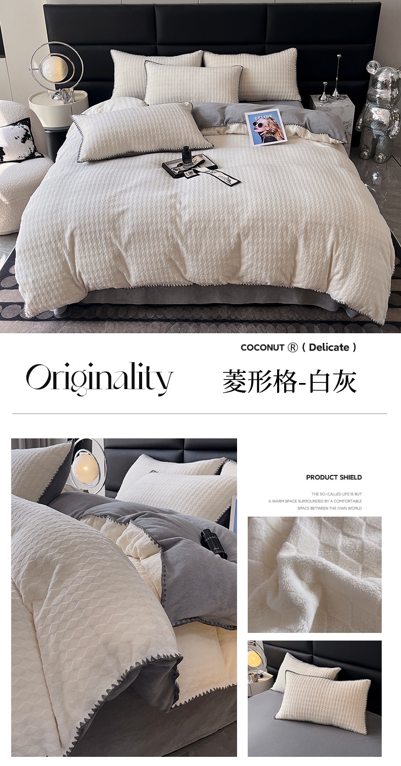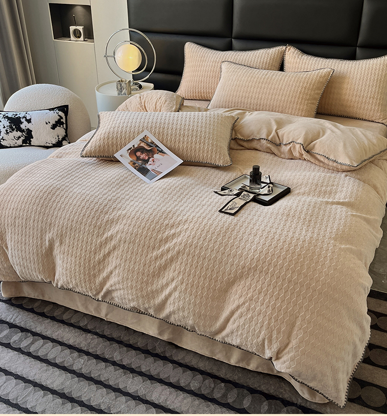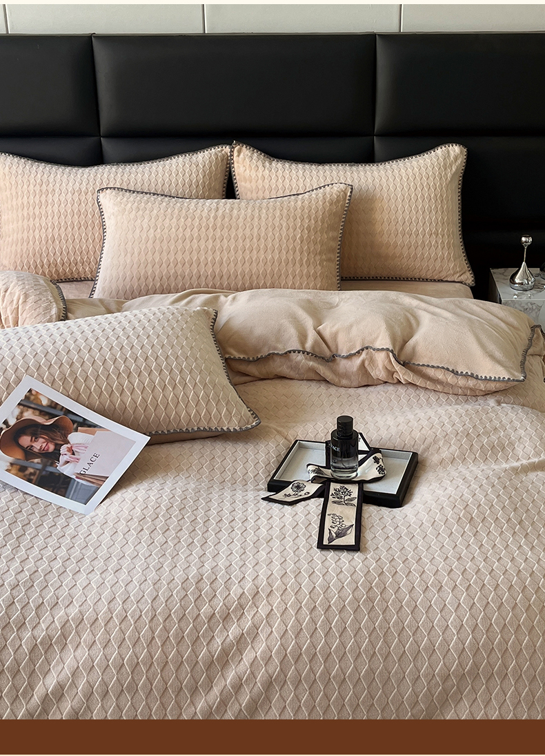 当前位置: 91家纺网 > 商品网购 > 床品套件 > 四件套 > 雕花绒四件套 > 菡宝 2024新款贝壳边无印风230g雕花绒床单四件套 菱形格-杏