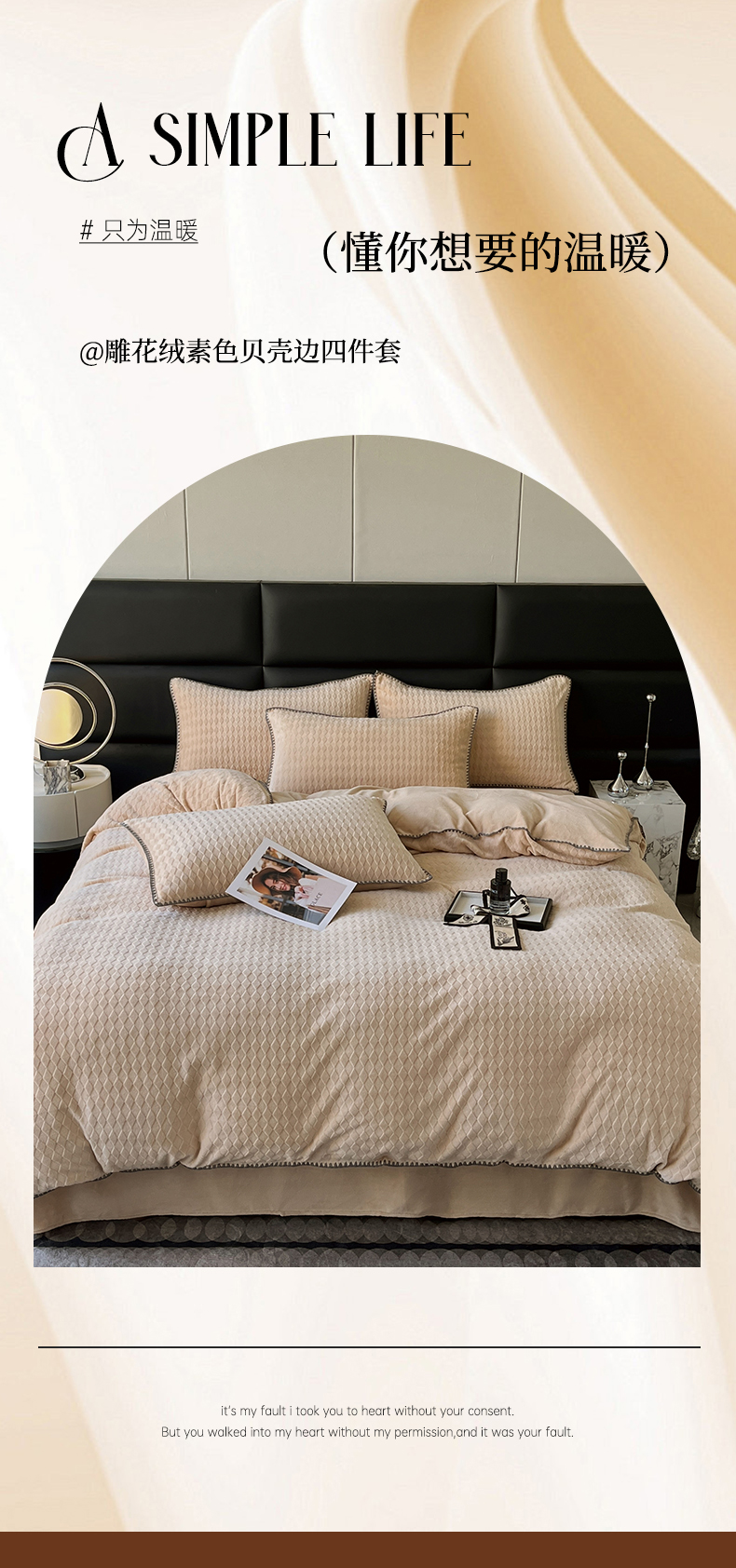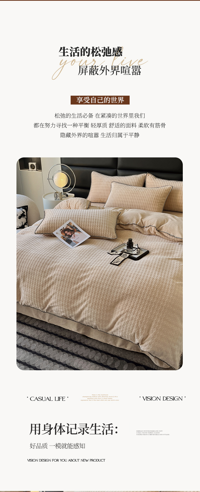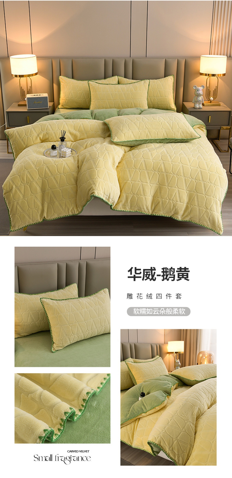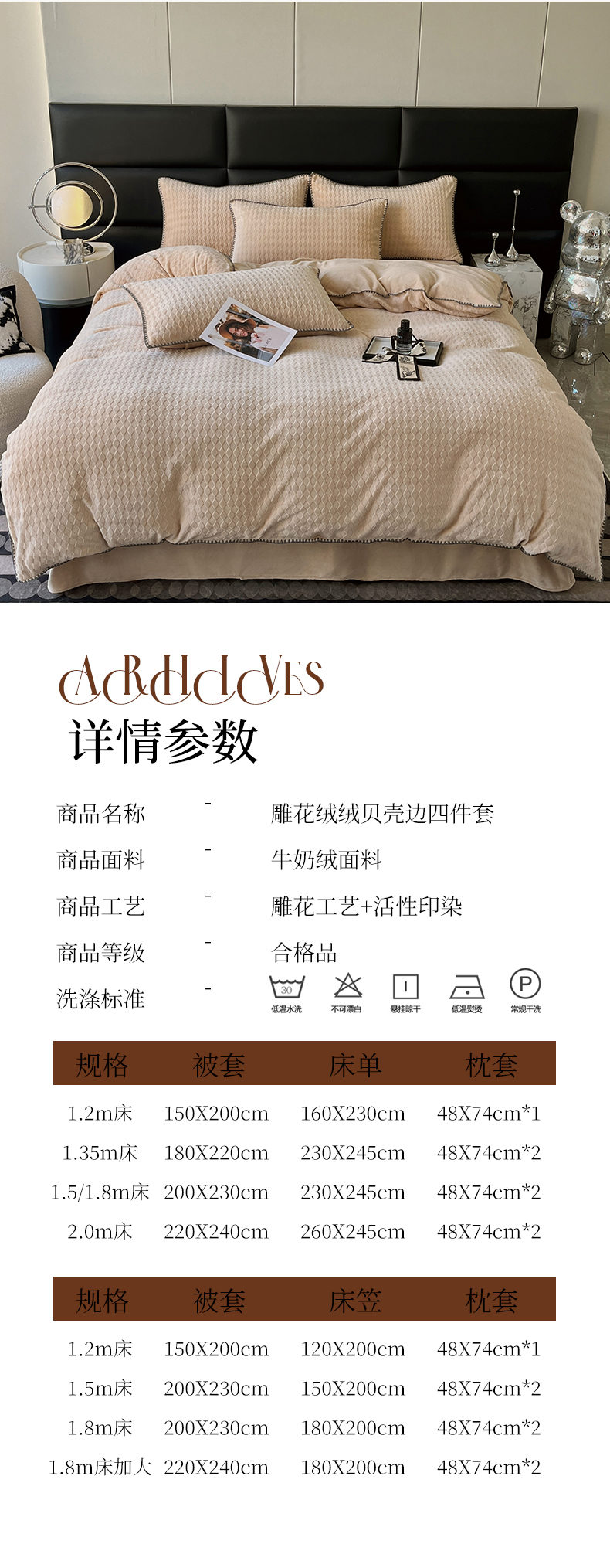 当前位置: 91家纺网 > 商品网购 > 床品套件 > 四件套 > 雕花绒四件套 > 菡宝 2024新款贝壳边无印风230g雕花绒床单四件套 菱形格-杏