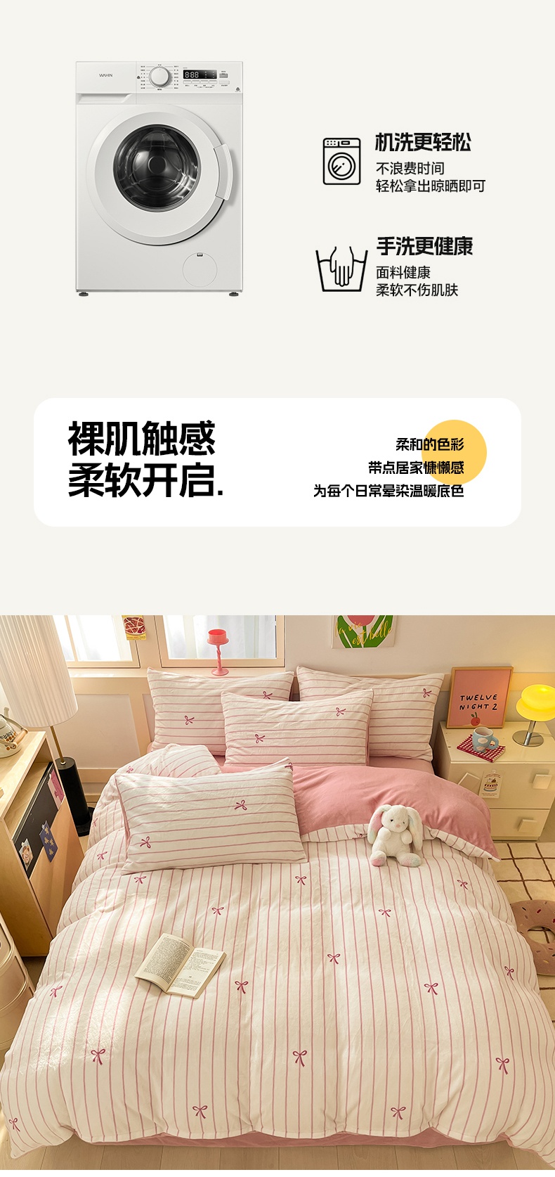 商品名称:寐眠 2024新款高克重印花牛奶绒四件套条纹风格一 蜜桃蝴蝶结
