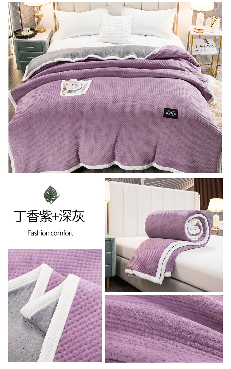 商品名称:宅部落 2024新款法莱绒牛奶绒毯三层夹棉多功能毛毯 丁香紫+深灰