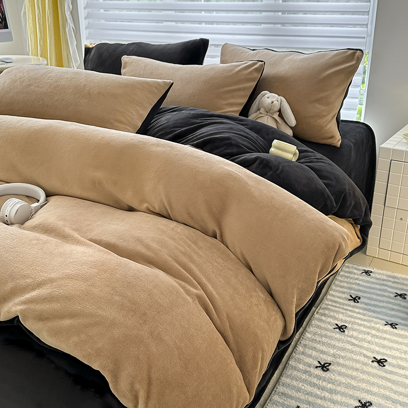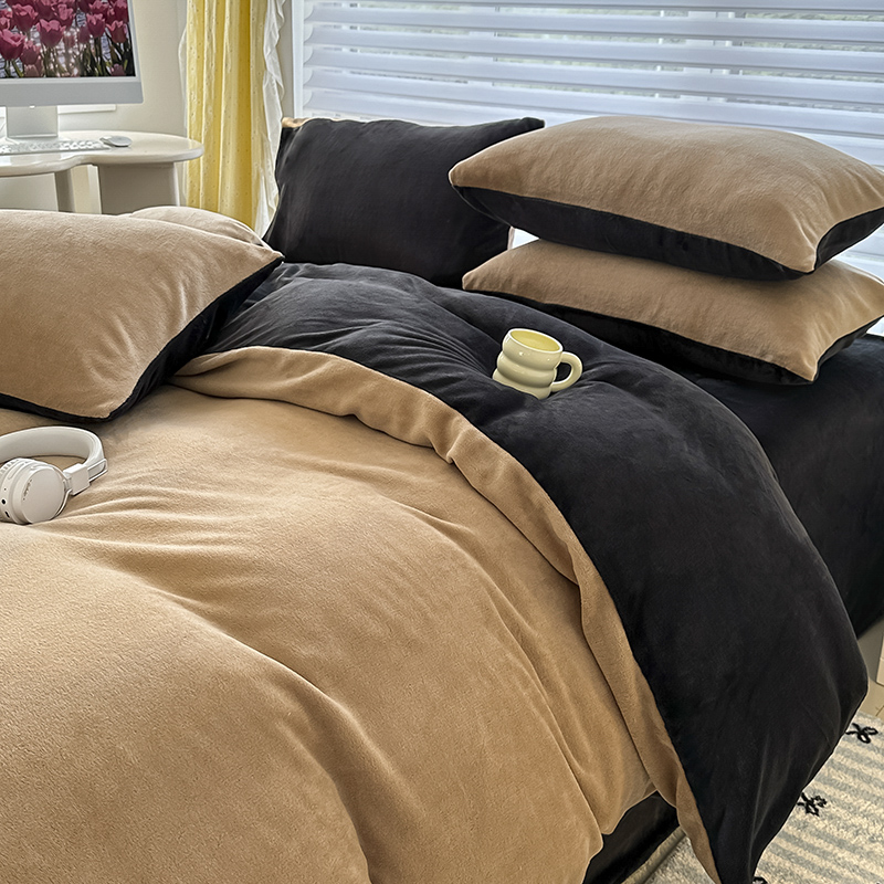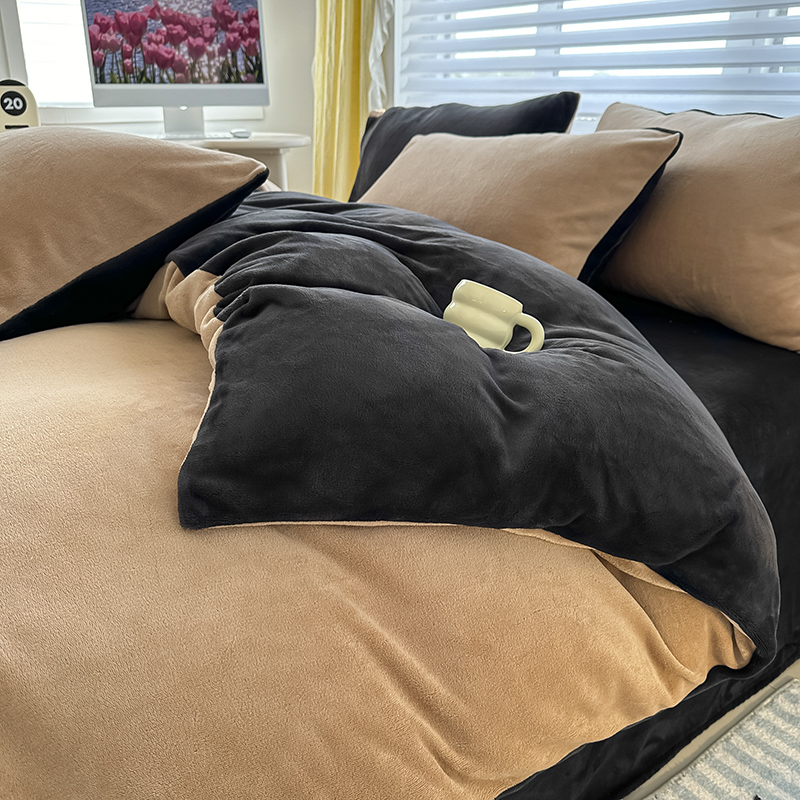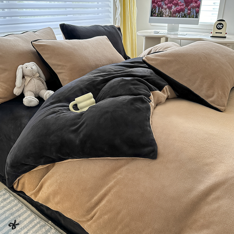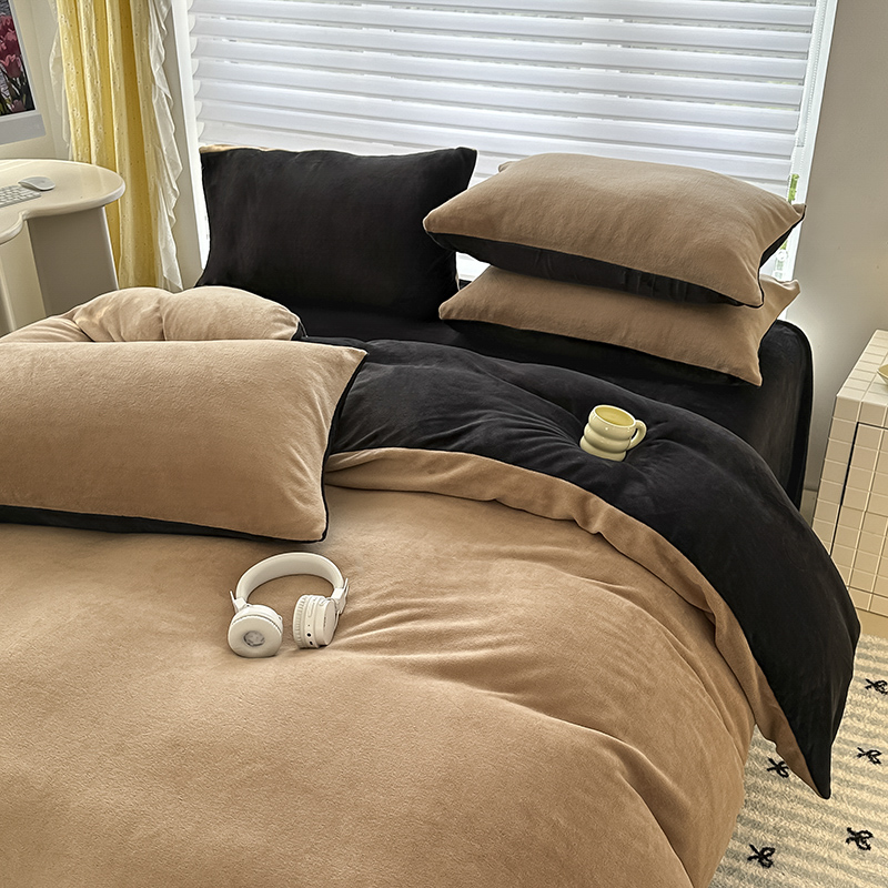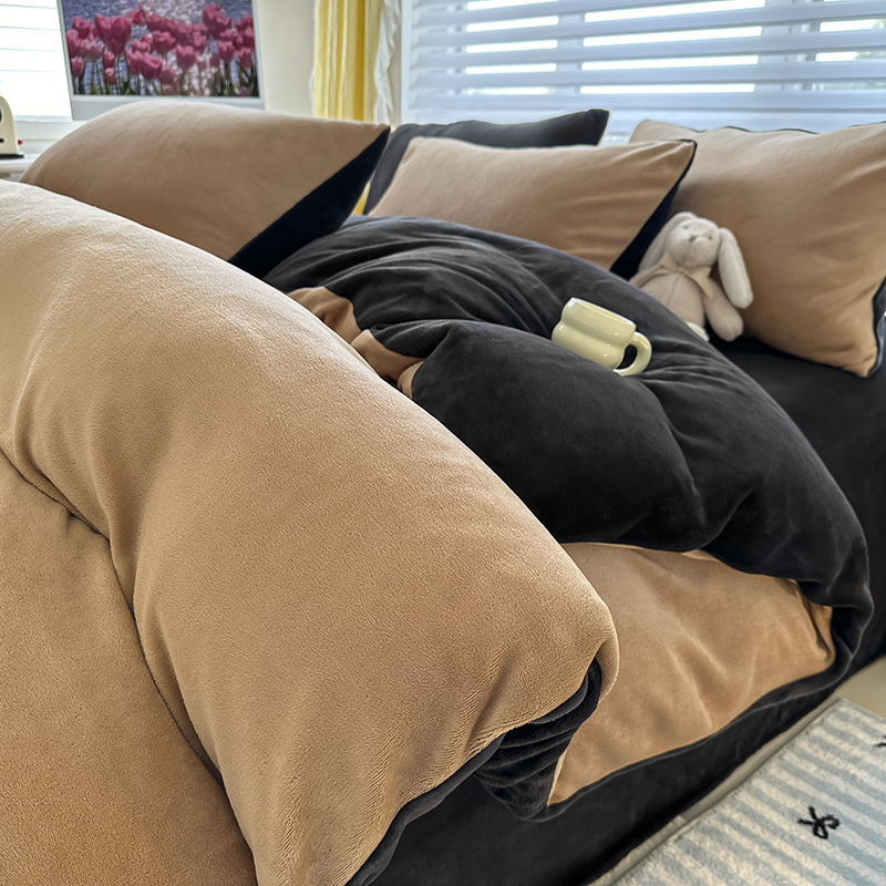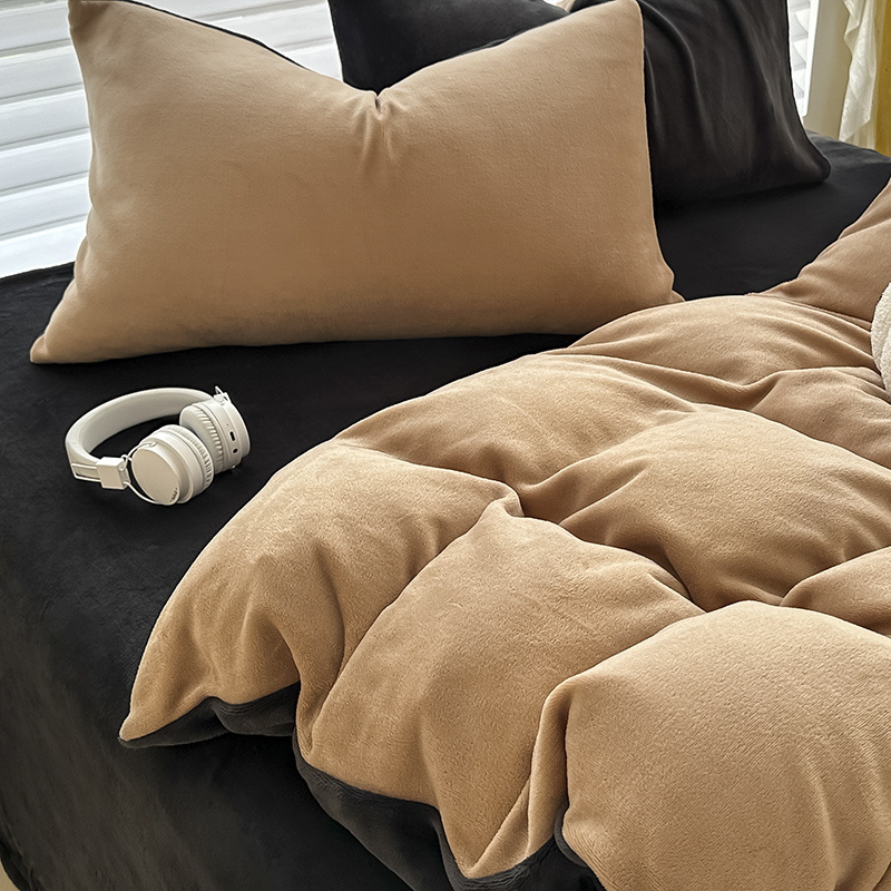 商品名称:梓瑄家居 2024新款高克重秋冬加厚双拼牛奶绒单枕套 卡其+黑灰
