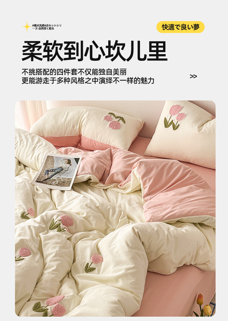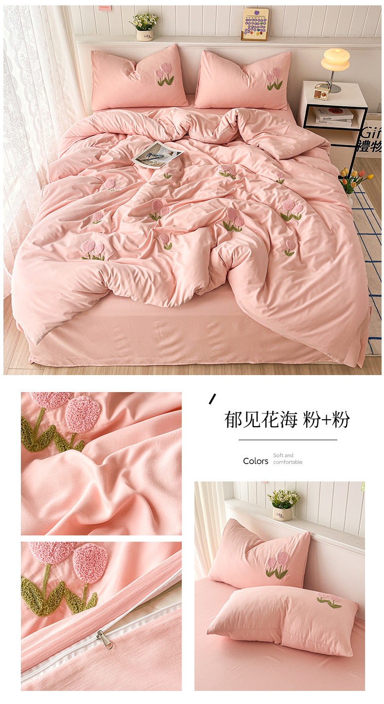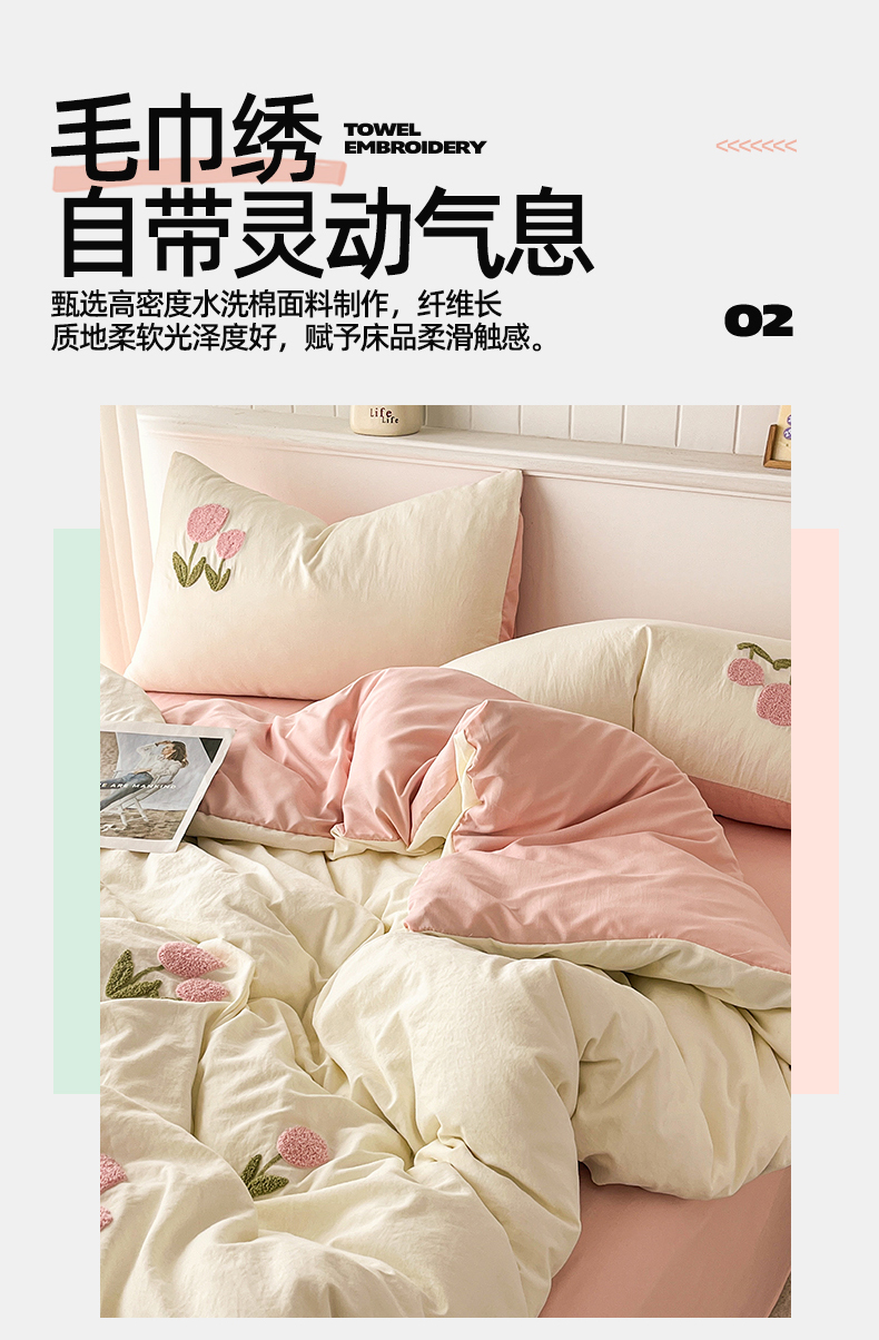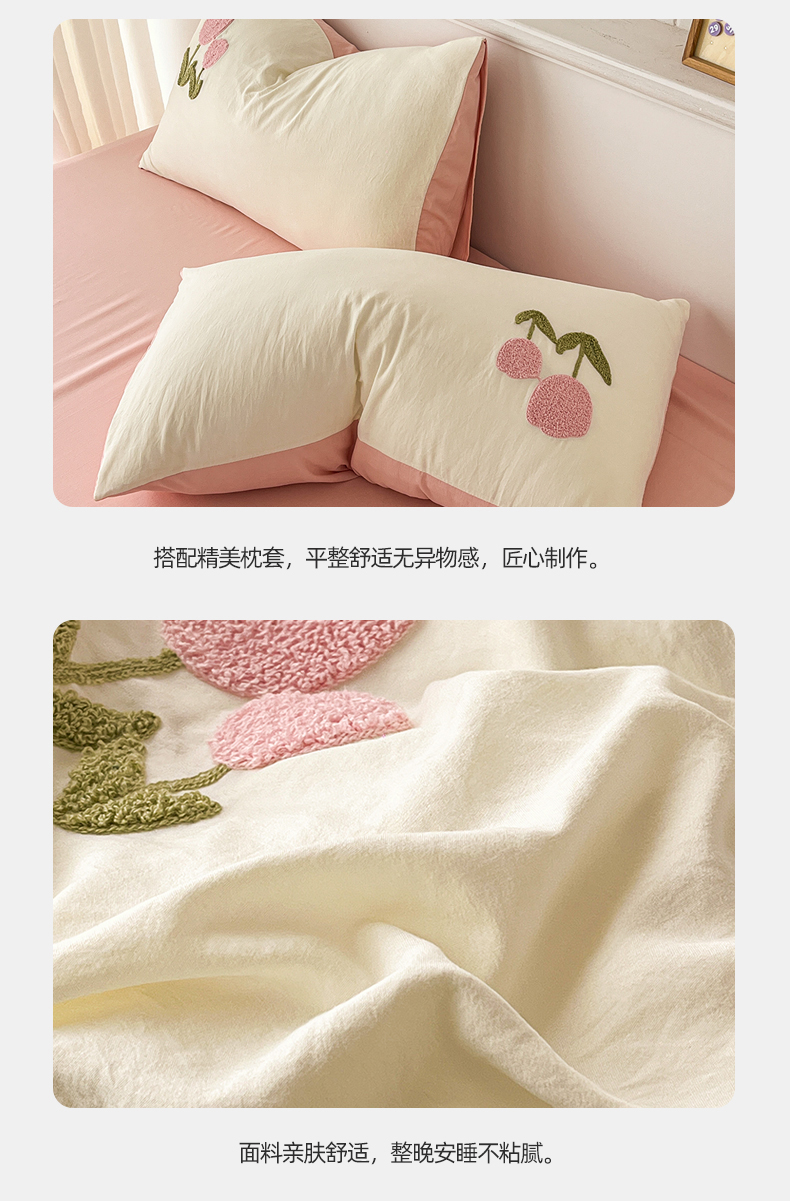 (总)多品家纺 2025新款ins奶油风刺绣枕套毛球款水洗棉四件套,洛熙,梦幻甜心,卿本佳人,月光恋语