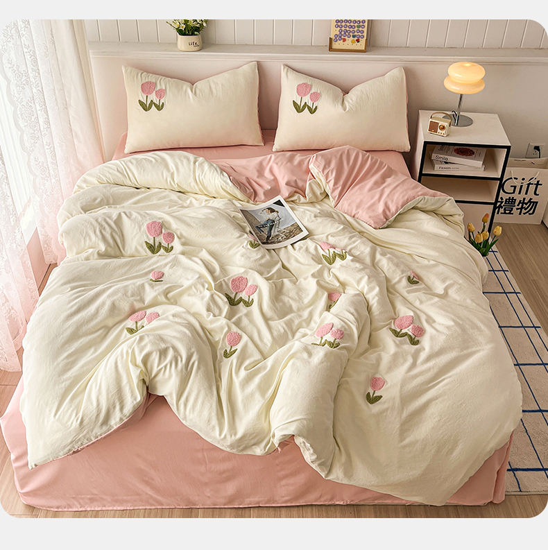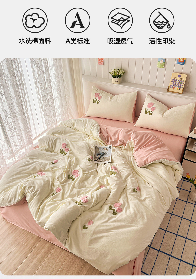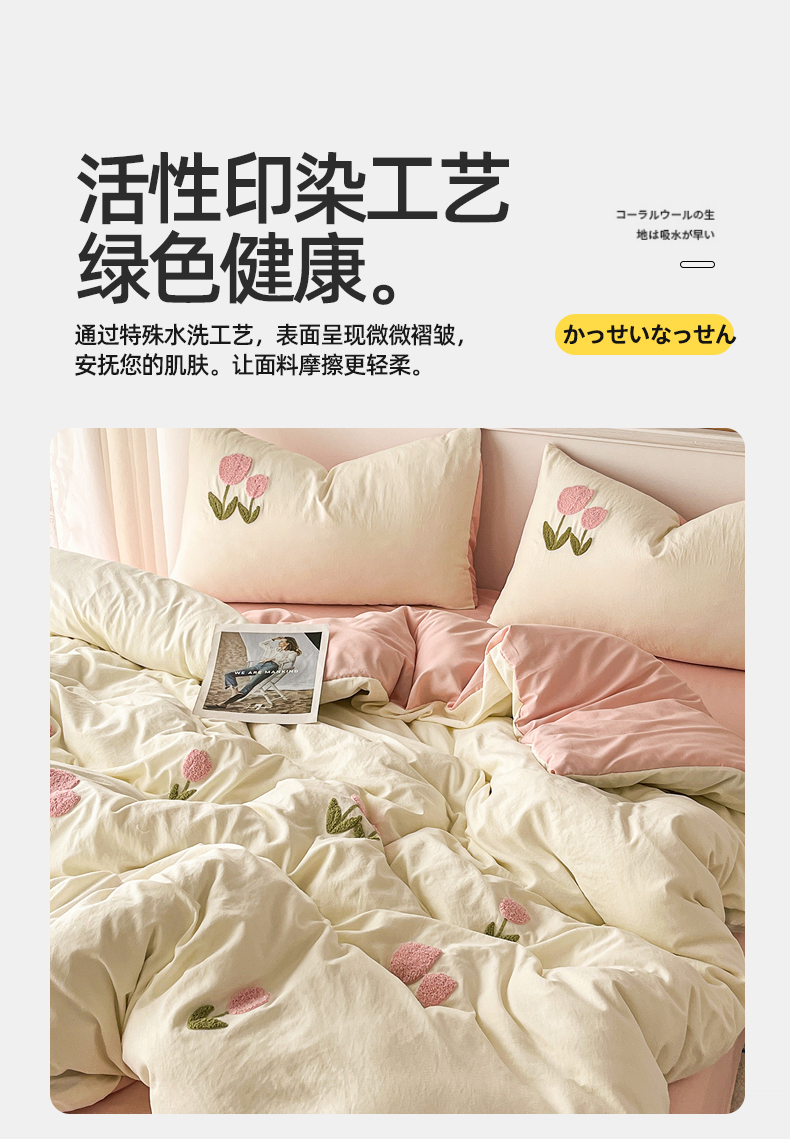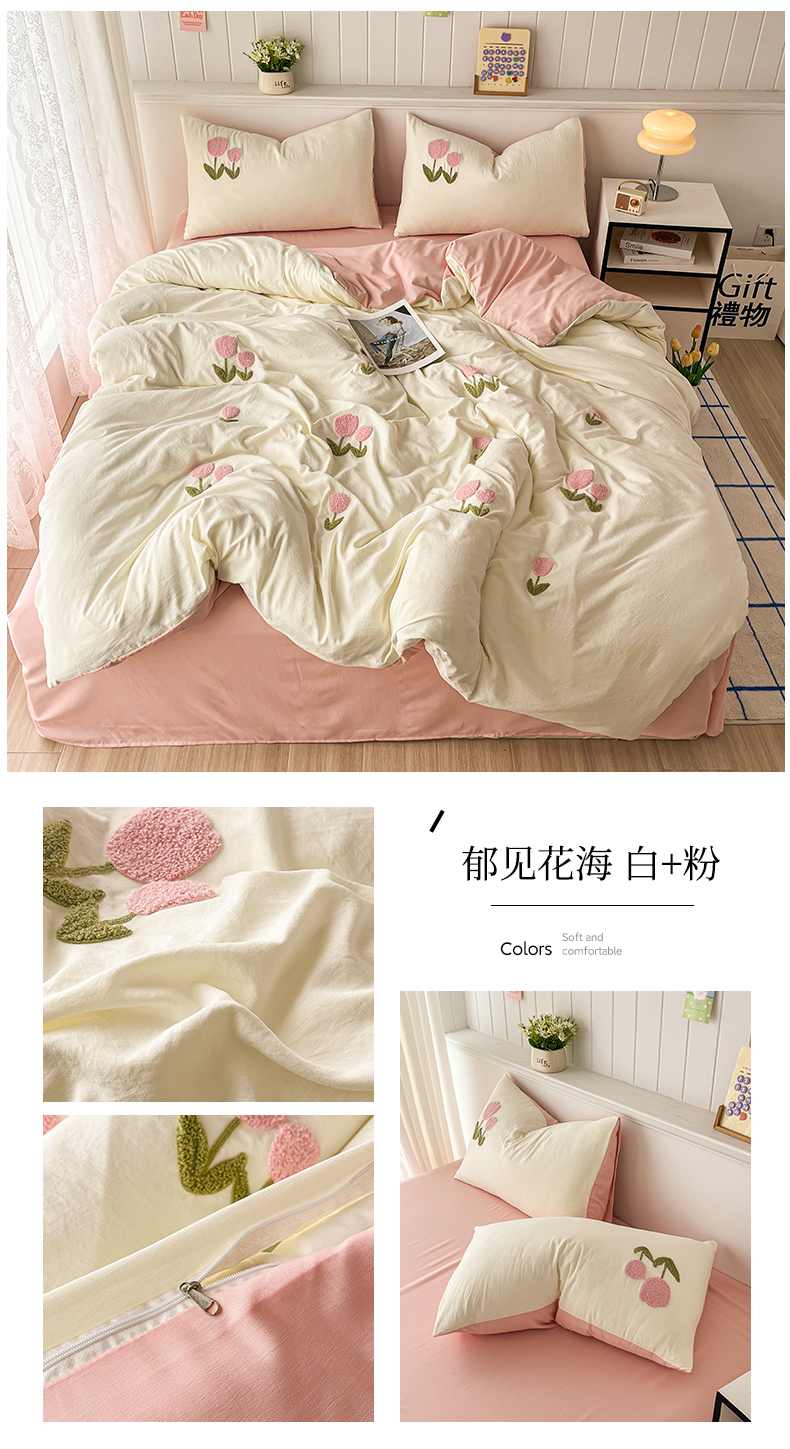 (总)多品家纺 2025新款ins奶油风刺绣枕套毛球款水洗棉四件套,洛熙,梦幻甜心,卿本佳人,月光恋语