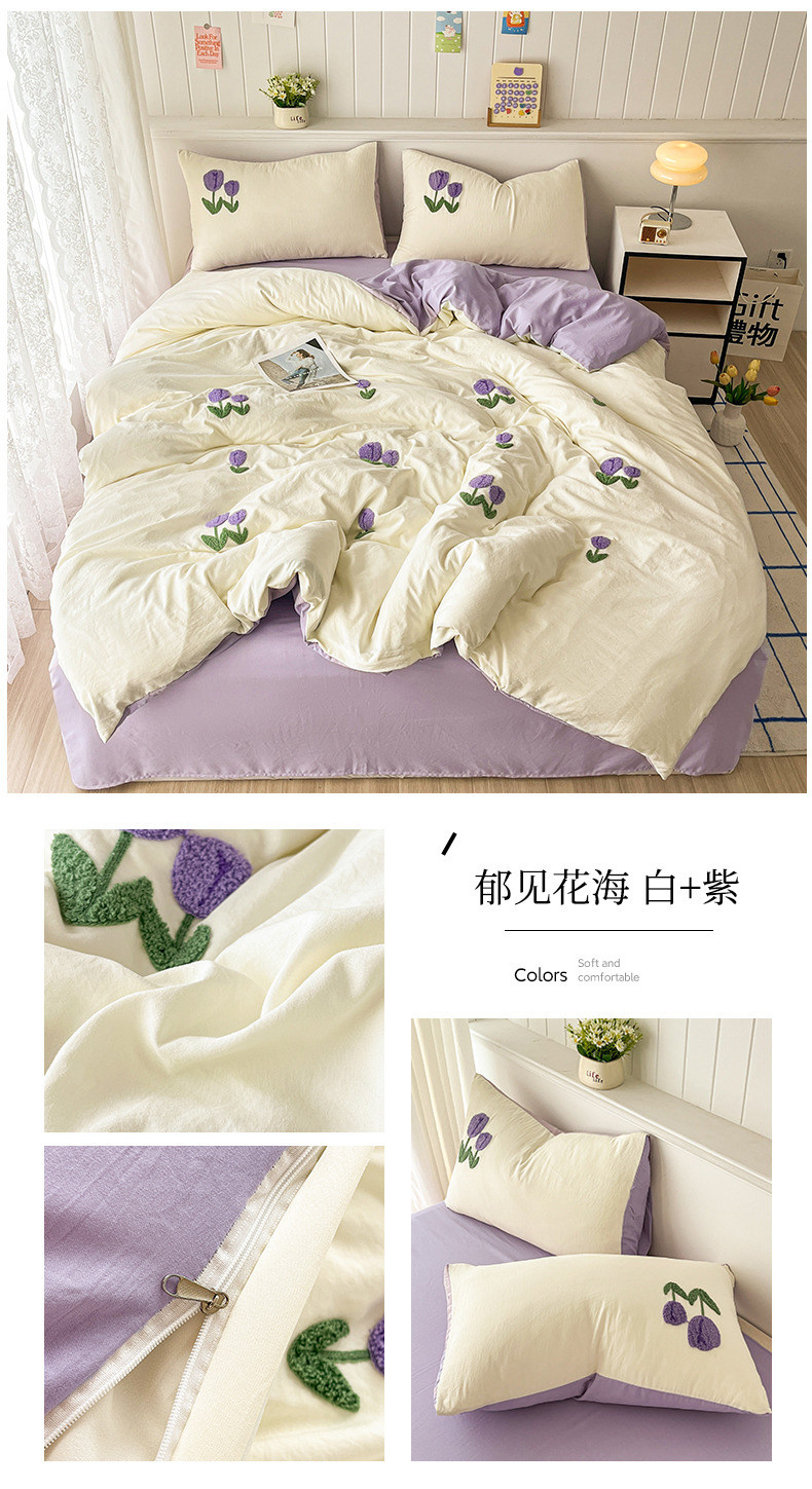 商品名称:(总)多品家纺 2024新款水洗棉毛巾绣四件套郁见花海