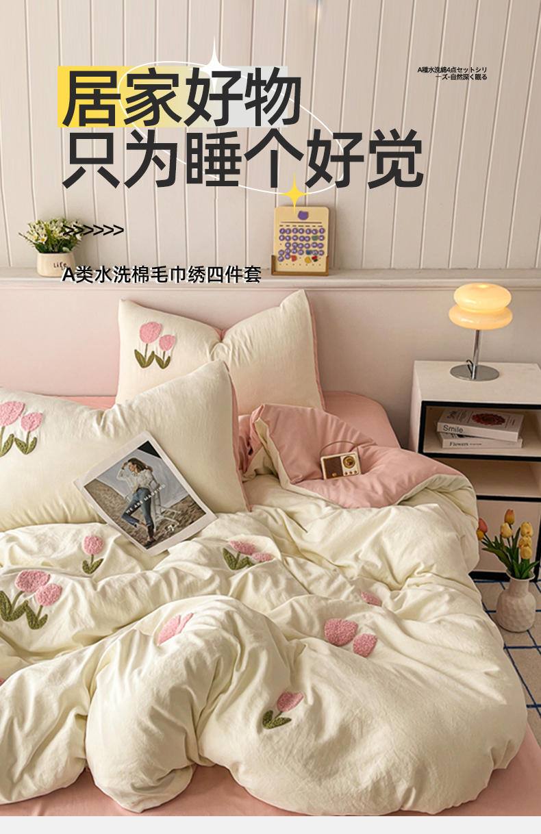 (总)多品家纺 2024新款水洗棉毛巾绣四件套郁见花海