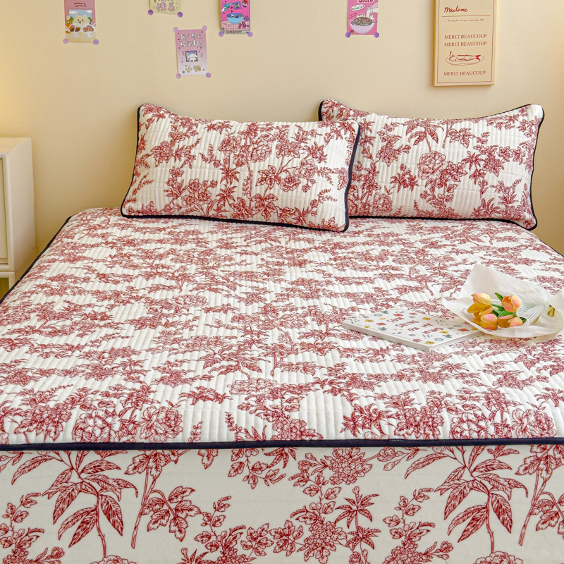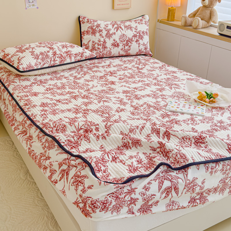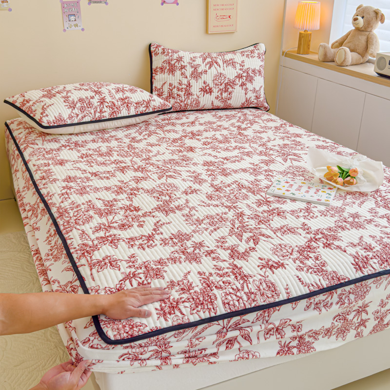 商品名称:金丝鸟 2024新款牛奶绒夹棉床笠 红色花朵 夹棉床笠