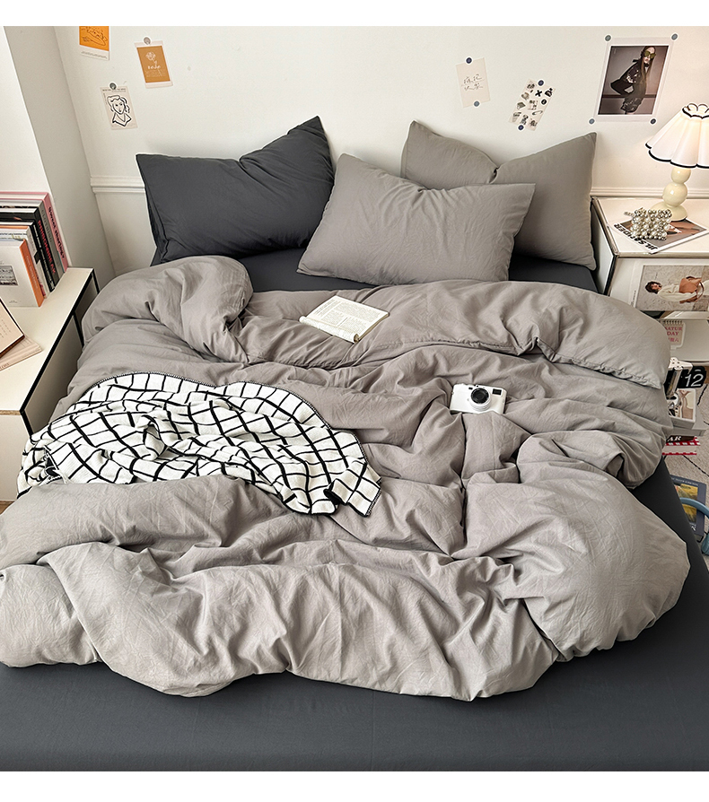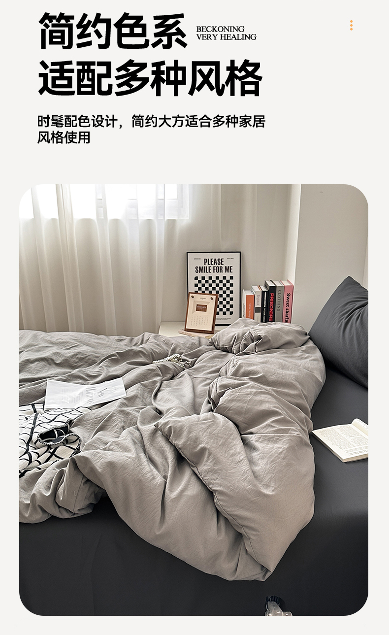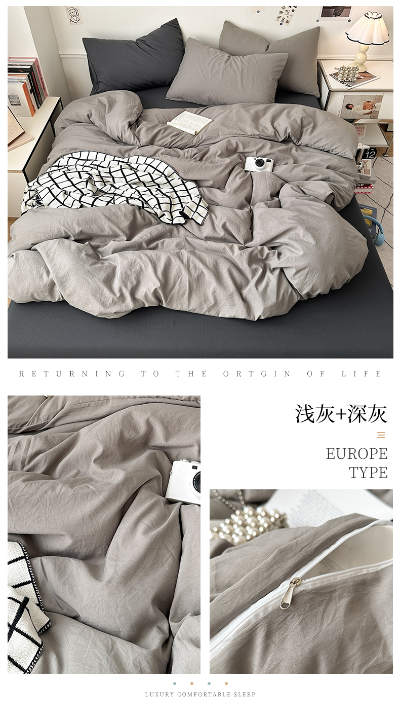 • 91家纺网 家纺一手货源 找家纺 多品家纺 2024新款超柔混搭水洗棉四件套--单被套 浅灰+深灰
