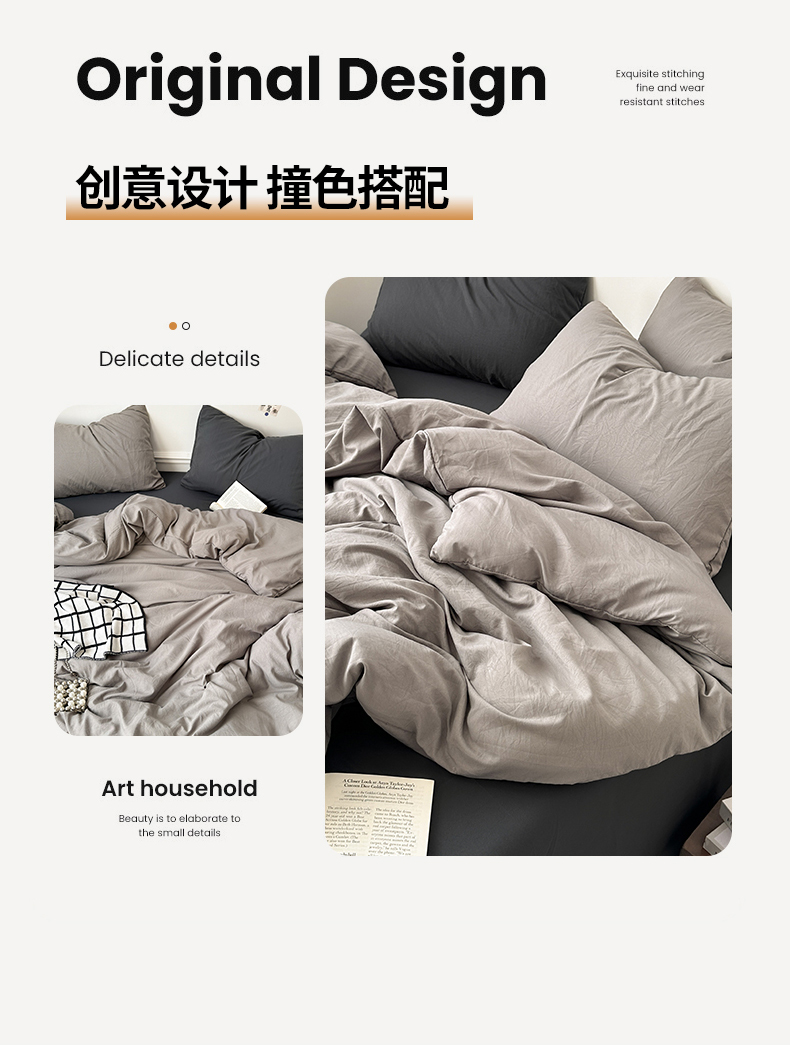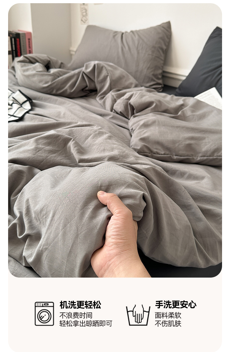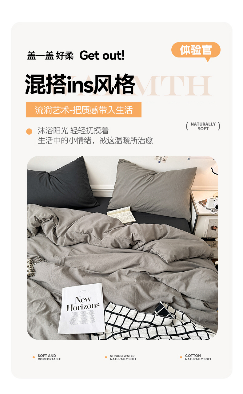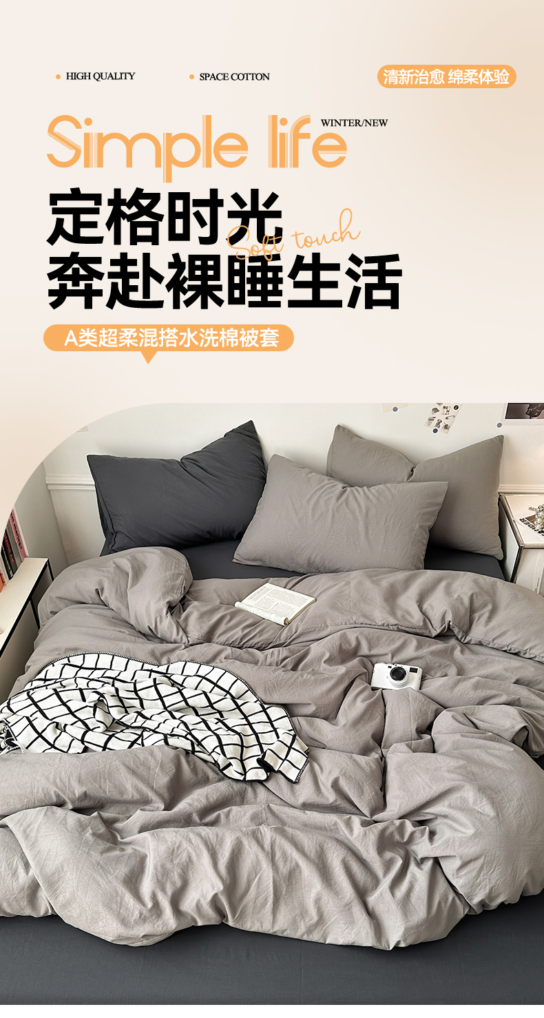 • 91家纺网 家纺一手货源 找家纺 多品家纺 2024新款超柔混搭水洗棉四件套--单被套 浅灰+深灰