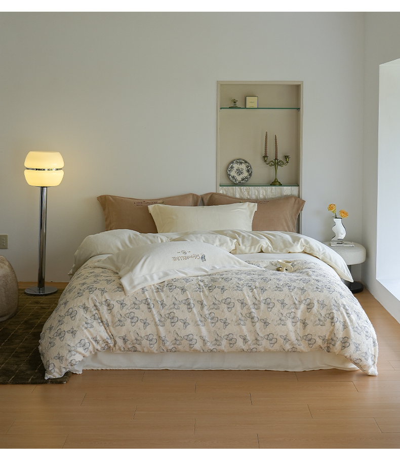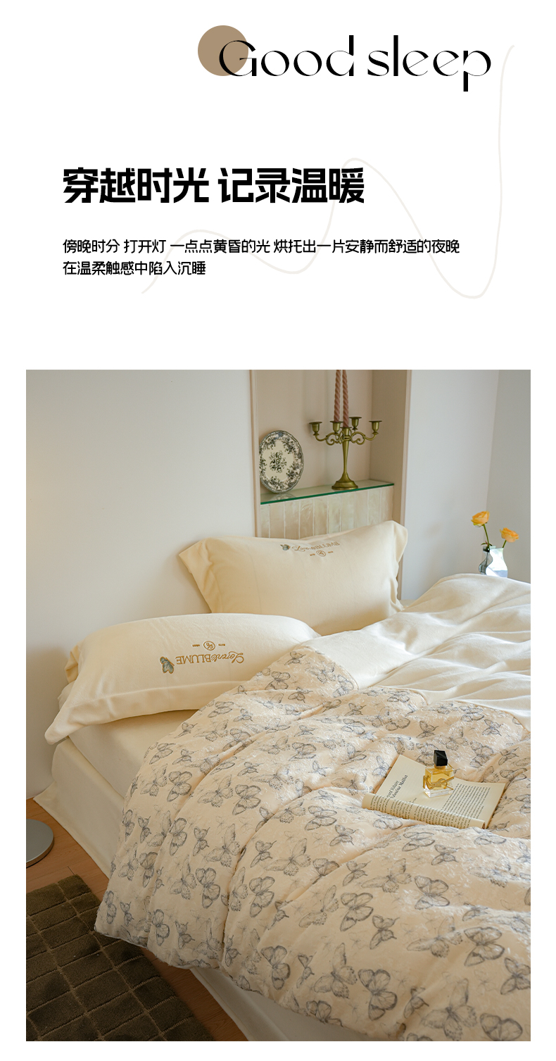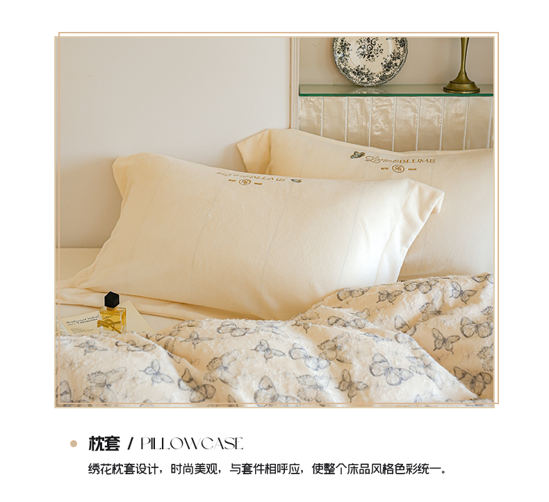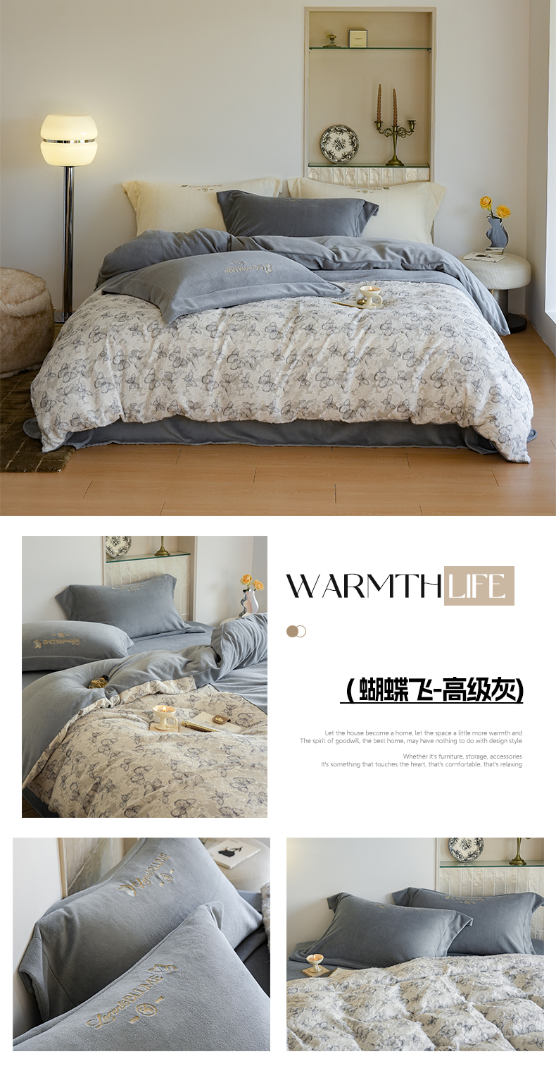 商品名称:秀色家纺 2025新款轻奢高级感牛奶绒床上四件套提花蝴蝶流苏保暖被套秋冬季加厚 蝴蝶飞-高级灰
