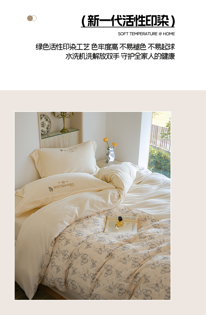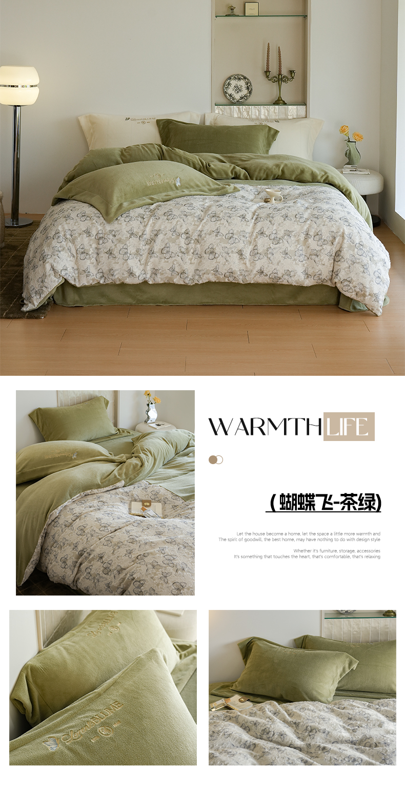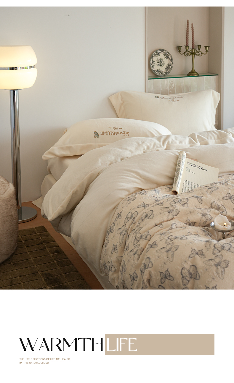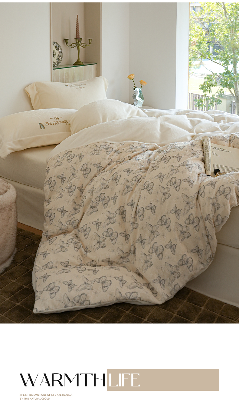 商品名称:秀色家纺 2025新款轻奢高级感牛奶绒床上四件套提花蝴蝶流苏保暖被套秋冬季加厚 蝴蝶飞-高级灰