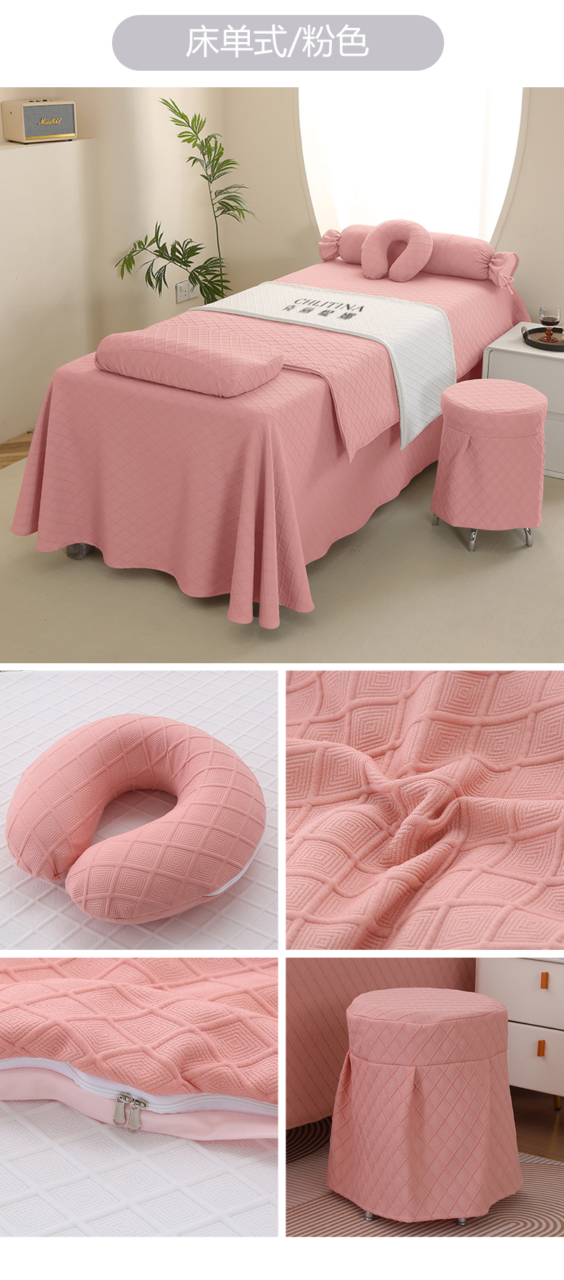 琪宝阁 2024新款莫代尔针织棉美 容床罩套件-华夫格 粉色
