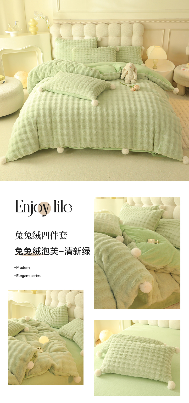 当前位置: 91家纺网 > 商品网购 > 床品套件 > 四件套 > 兔毛绒四件套 > 逸尚阁 2024新款兔兔绒纯色泡泡毛球四件套 兔兔绒泡芙-清新绿