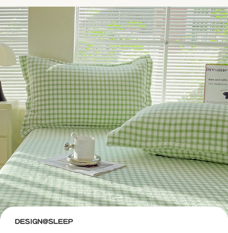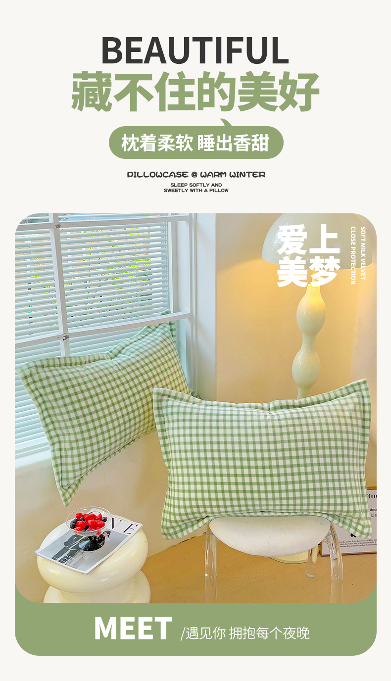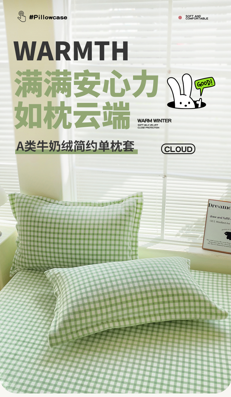 恬澳家纺 2025新款暖阳牛奶绒枕套 暖阳-抹茶格