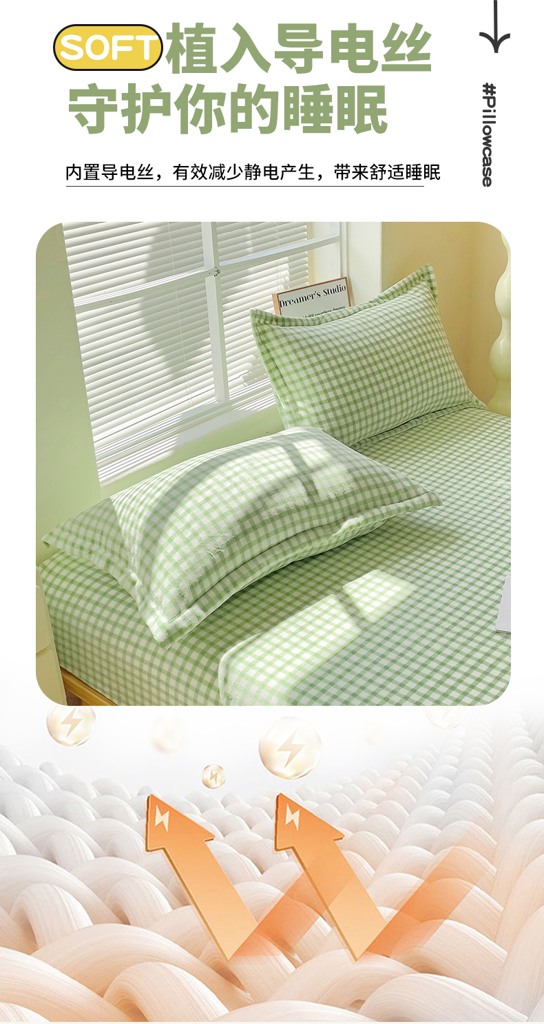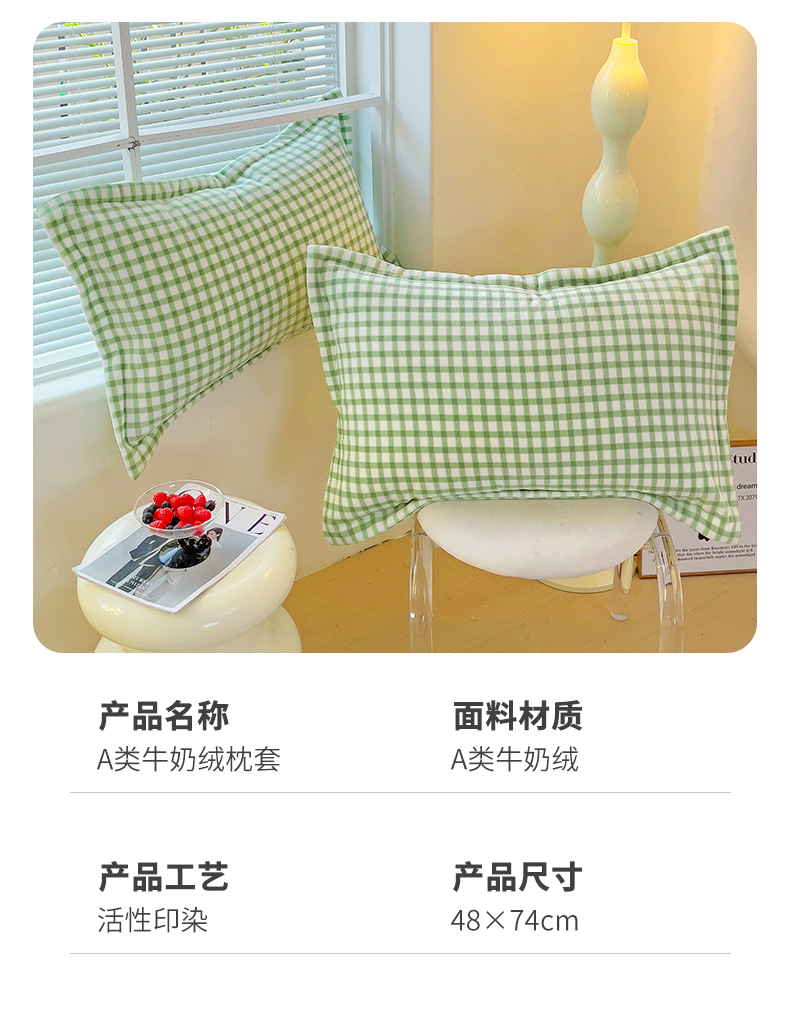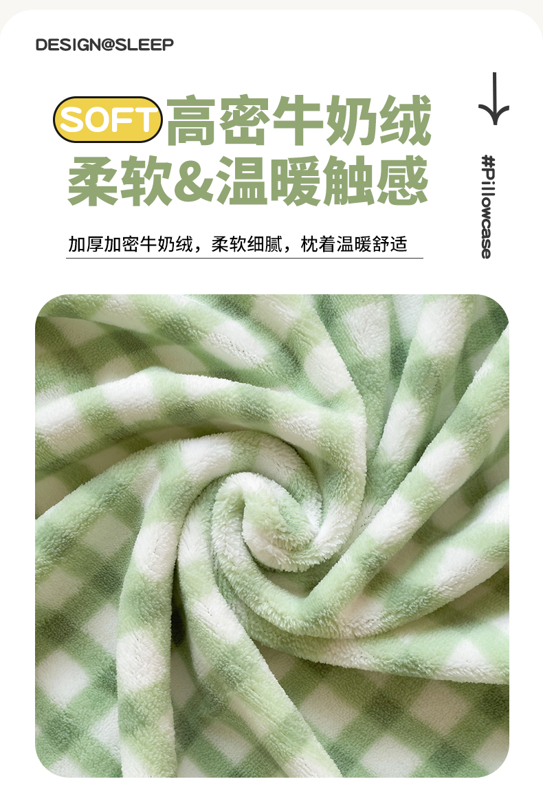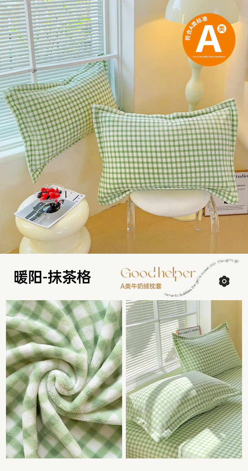 商品名称:恬澳家纺 2025新款暖阳牛奶绒枕套 暖阳-抹茶格