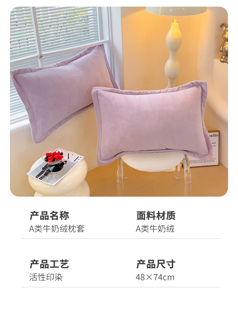 商品名称:恬澳家纺 2025新款暖阳牛奶绒枕套 暖阳-芋泥紫