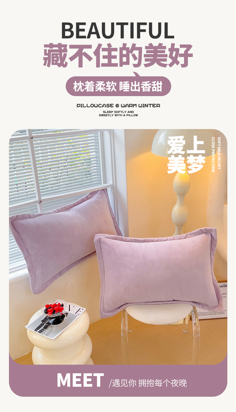 恬澳家纺 2025新款暖阳牛奶绒枕套 暖阳-芋泥紫