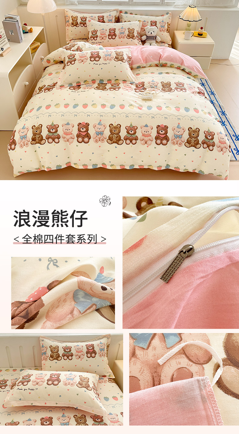 绵庭家纺 2025新款全棉印花四件套系列 浪漫熊仔