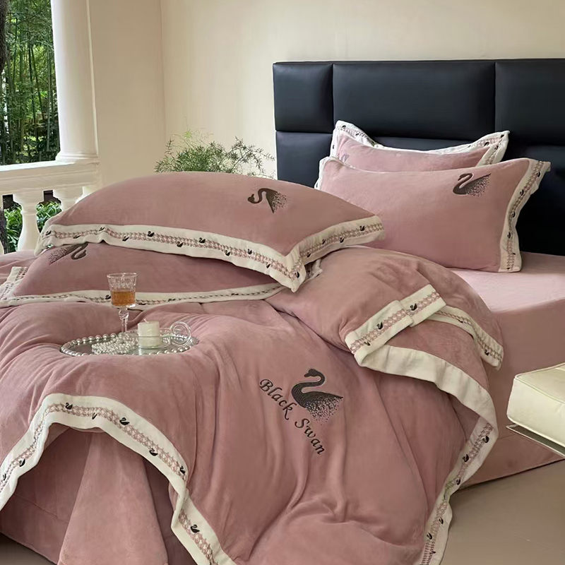 当前位置: 91家纺网 > 商品网购 > 床品套件 > 四件套 > 牛奶绒四件套 > 未来家居 2024新款全消光天鹅刺绣牛奶绒四件套(电商控价格不低于400) 粉色