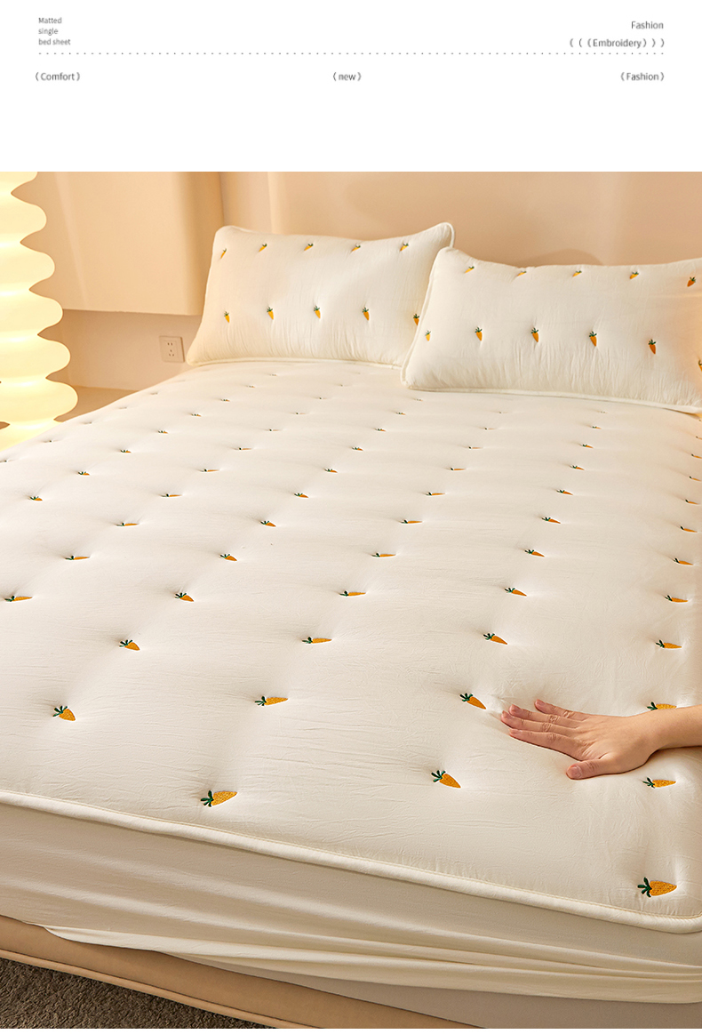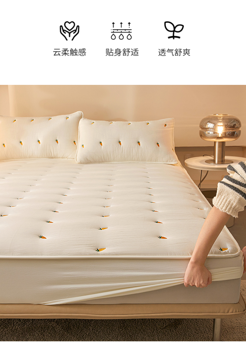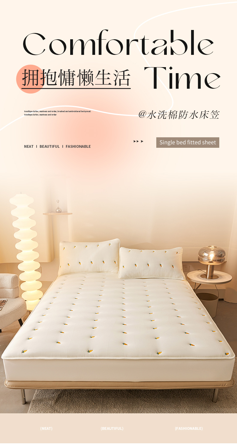推推 2025新款床褥式水洗棉防水刺绣床笠 跨境外贸 胡萝卜-米白