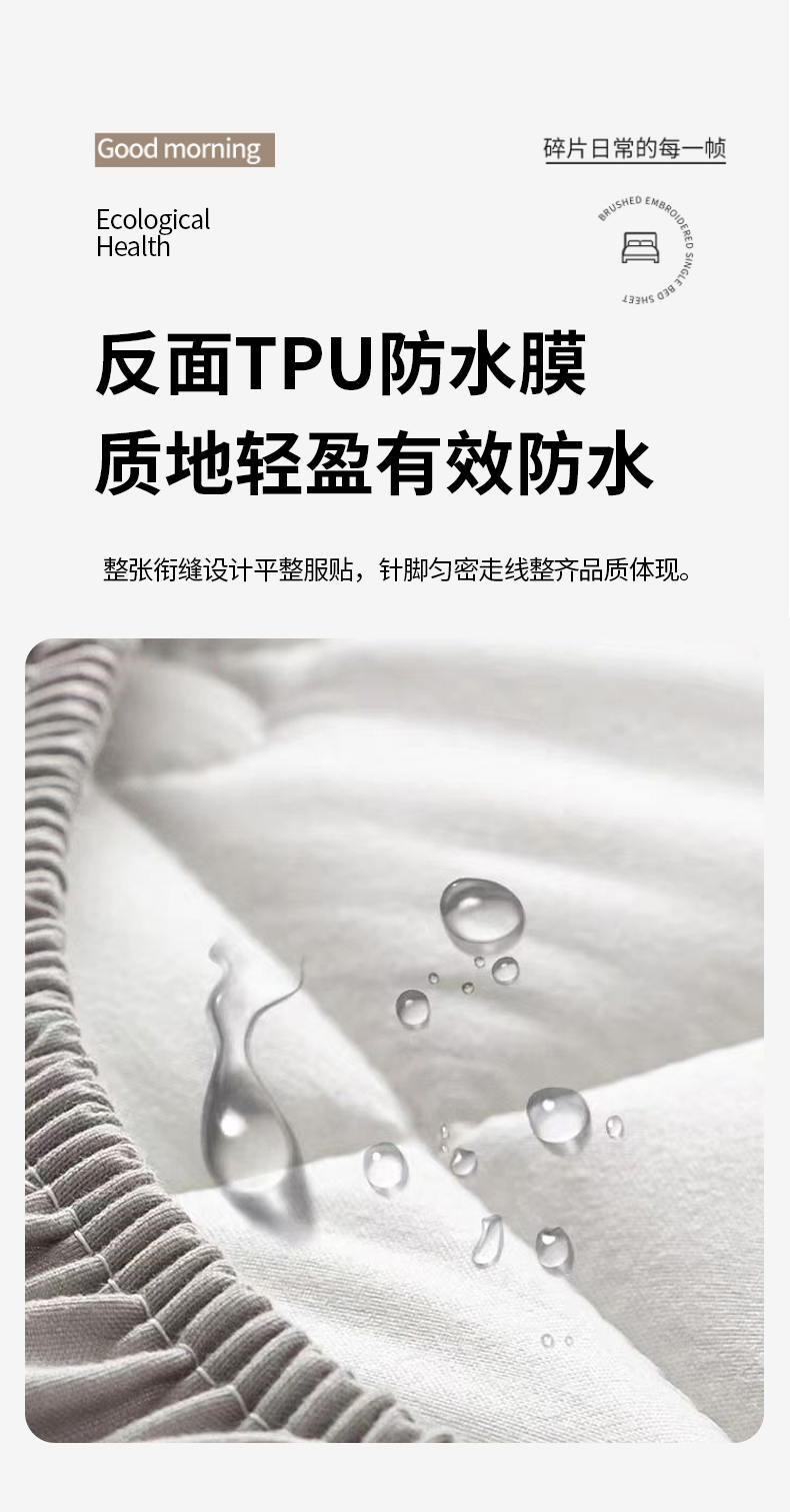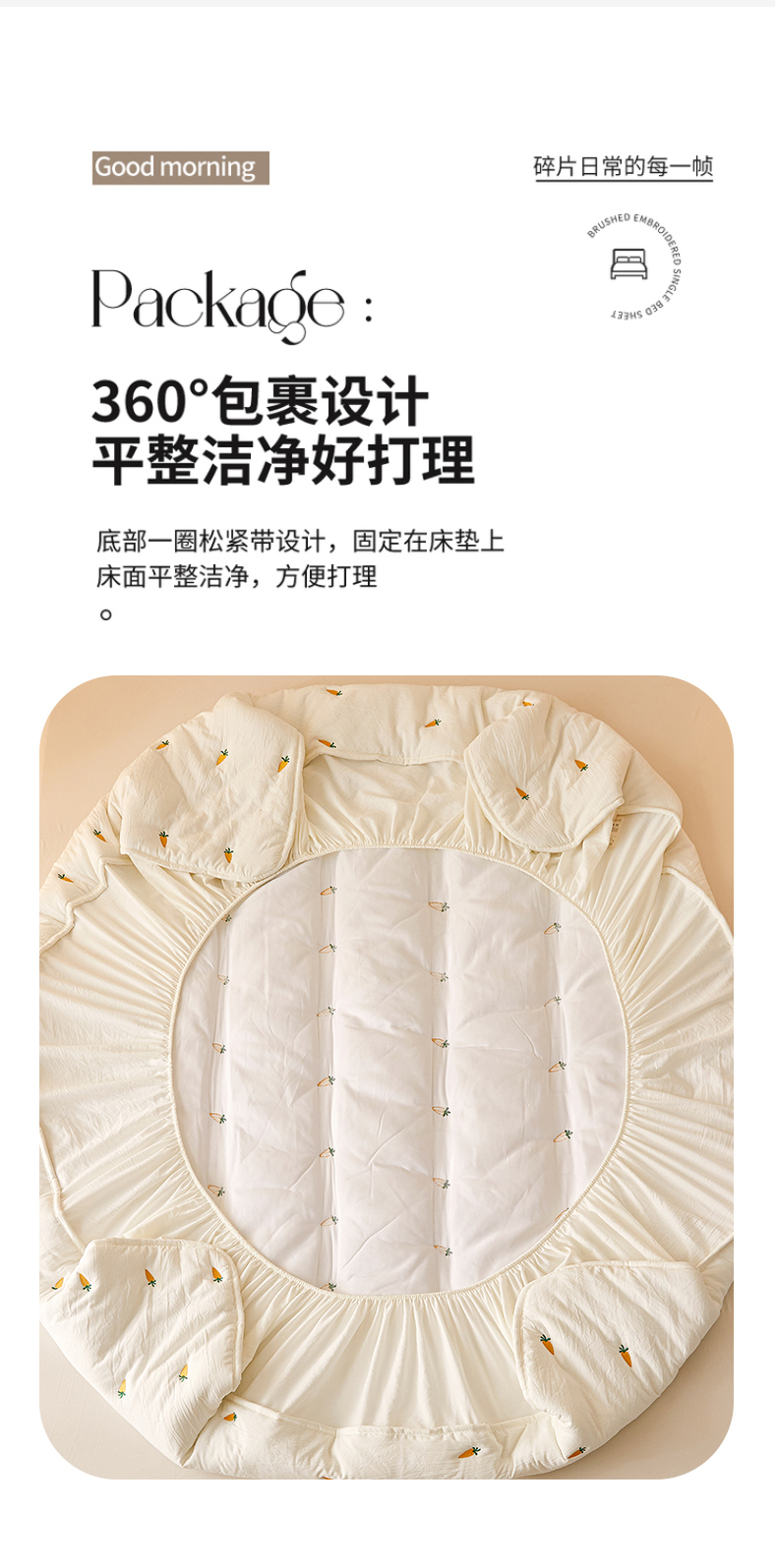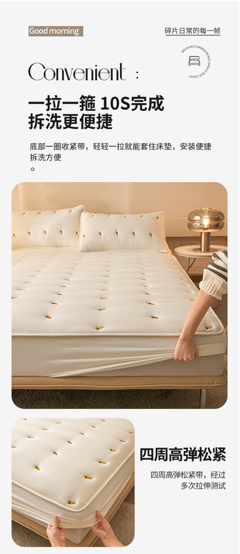 推推 2025新款床褥式水洗棉防水刺绣床笠 跨境外贸 胡萝卜-米白