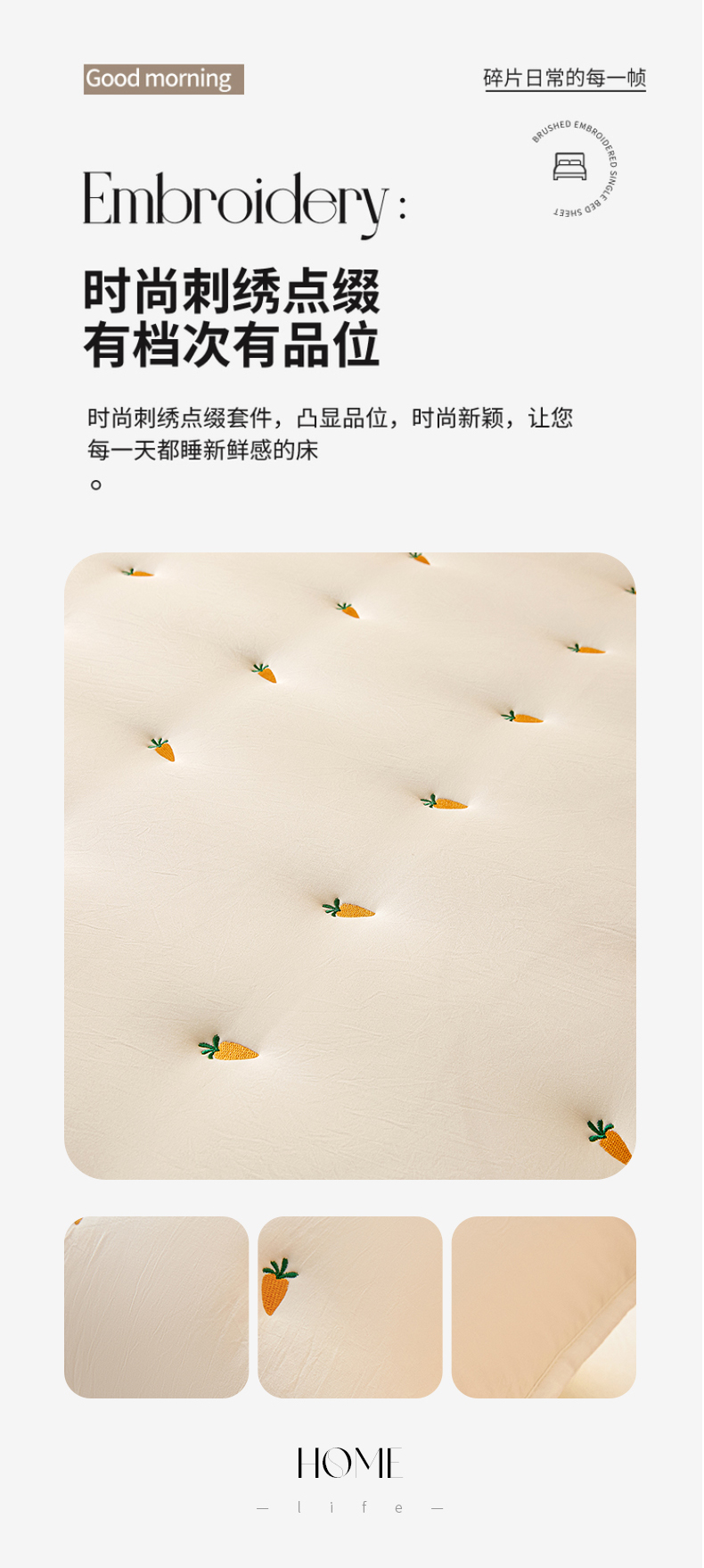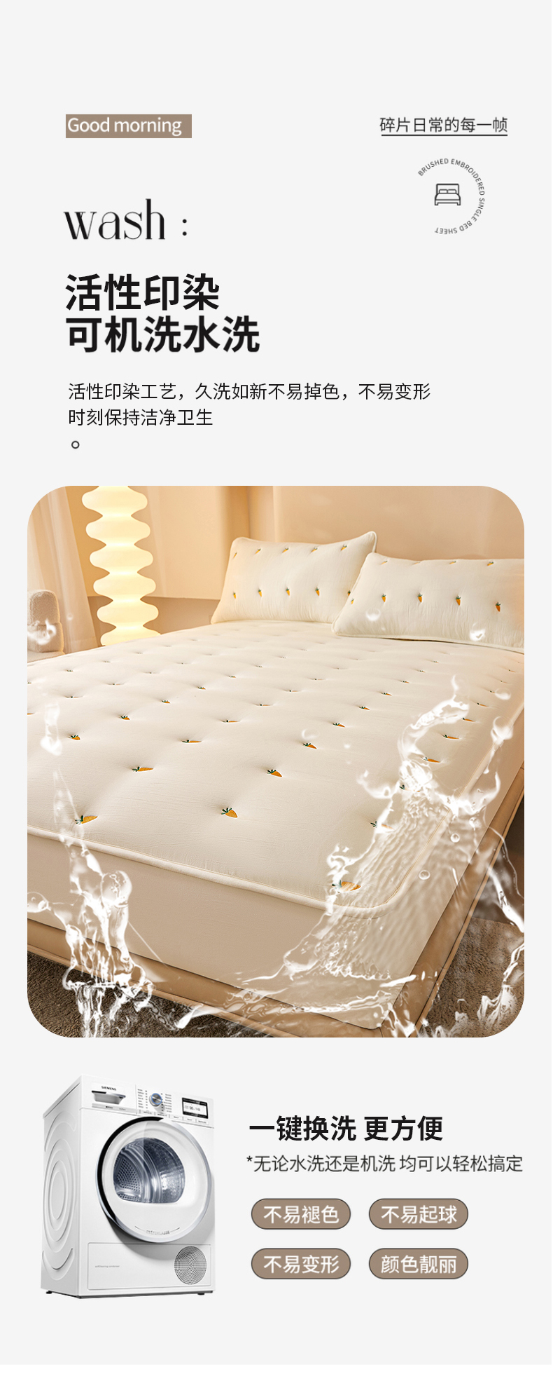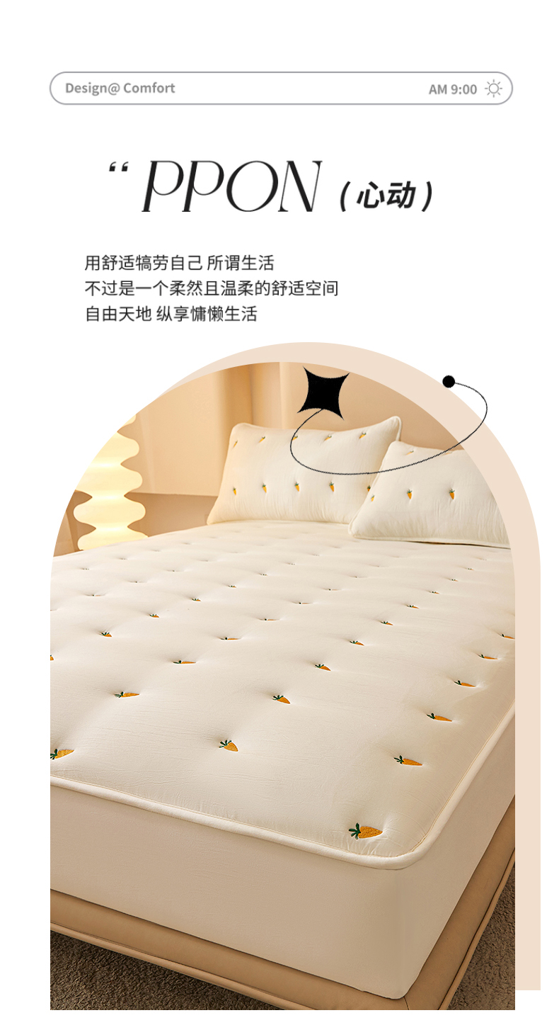 • 91家纺网 家纺一手货源 找家纺 推推 2025新款床褥式水洗棉防水刺绣床笠 跨境外贸 胡萝卜-米白