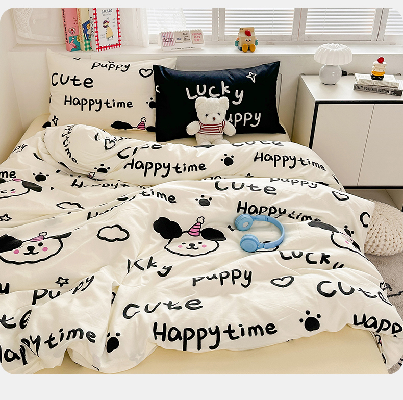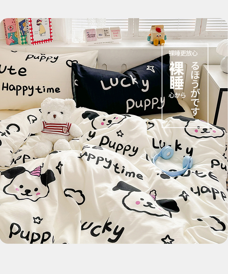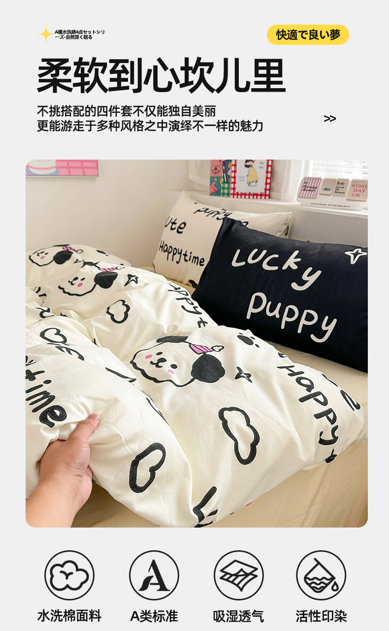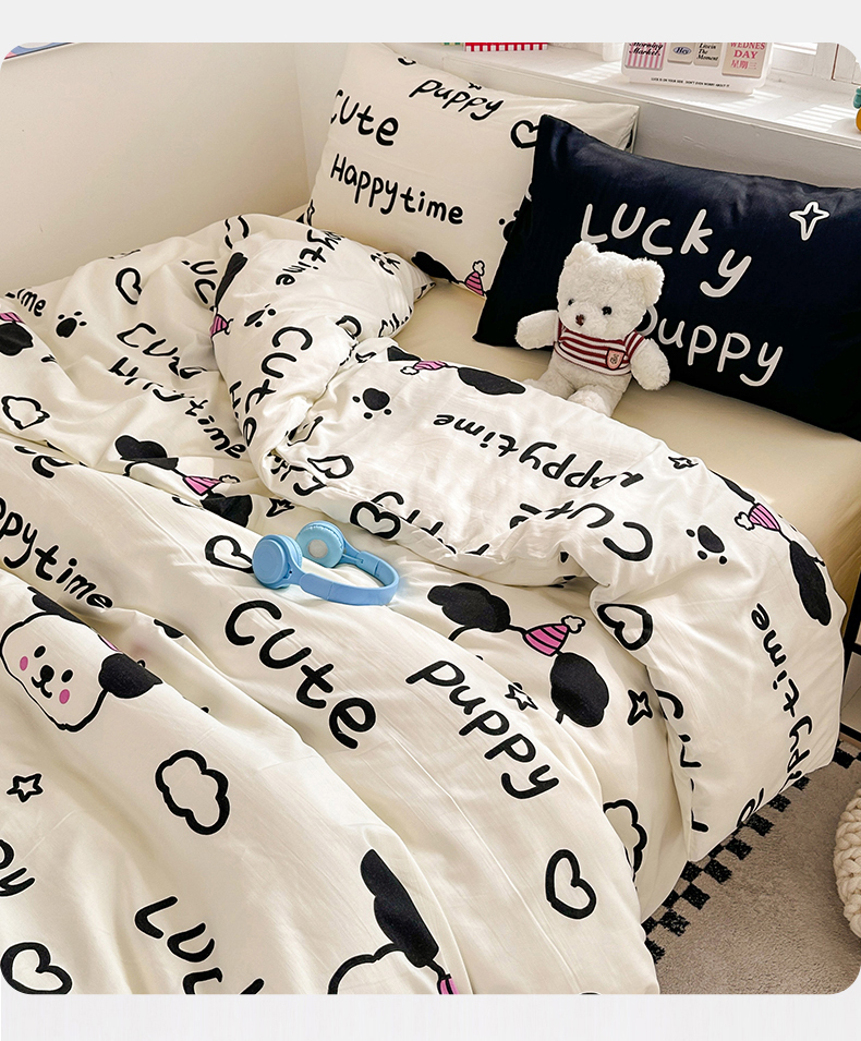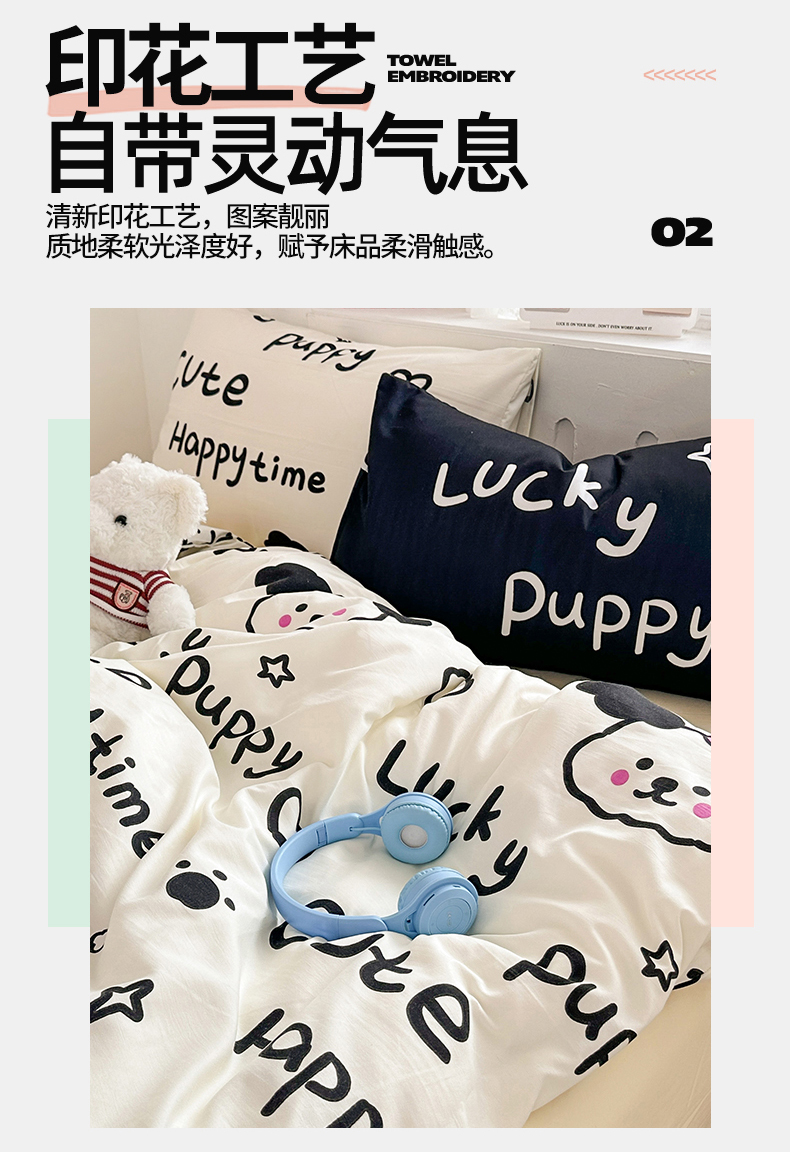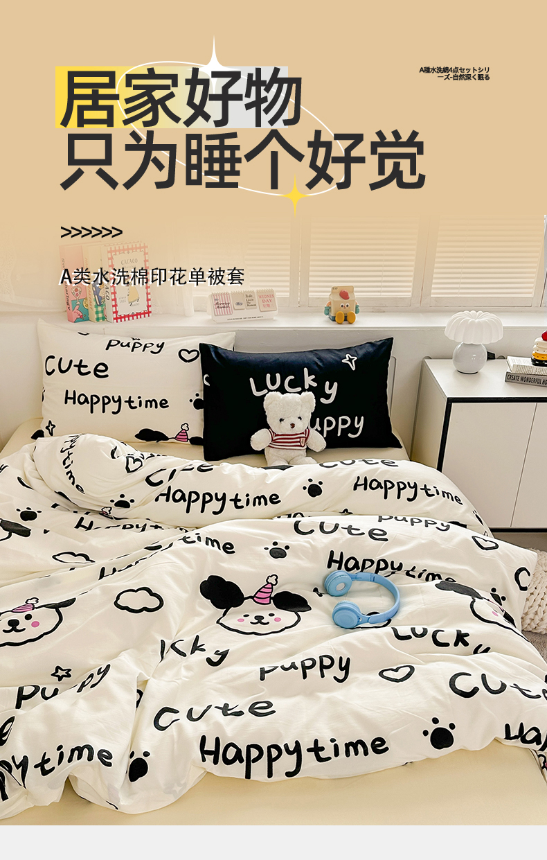 多品家纺 2024新款水洗棉大版枕套混搭单被套 字母家园
