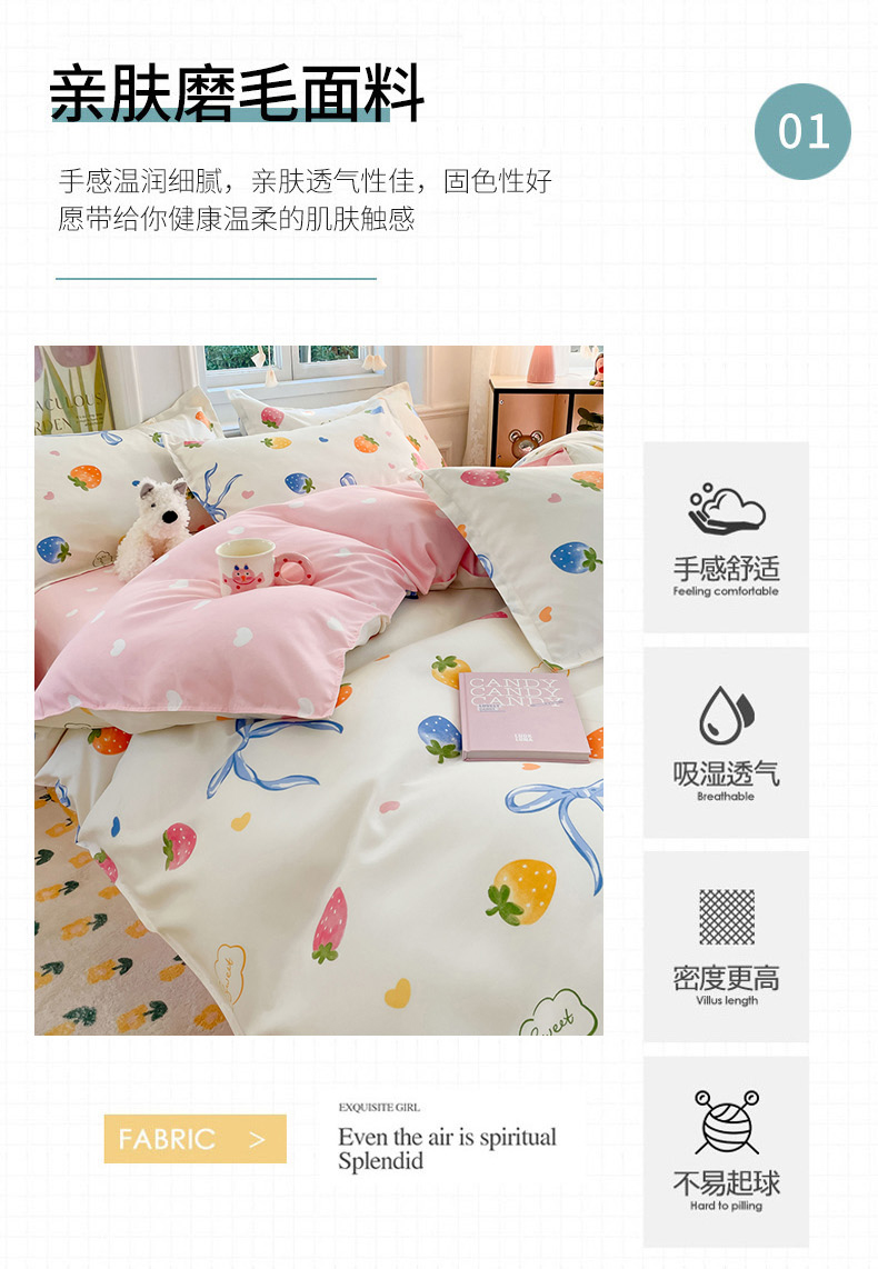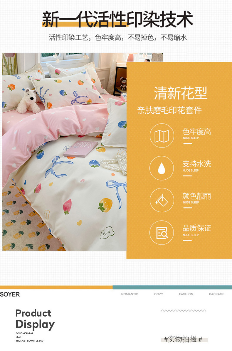 商品名称:世爵 2025新款磨毛印花单被套 奶油草莓