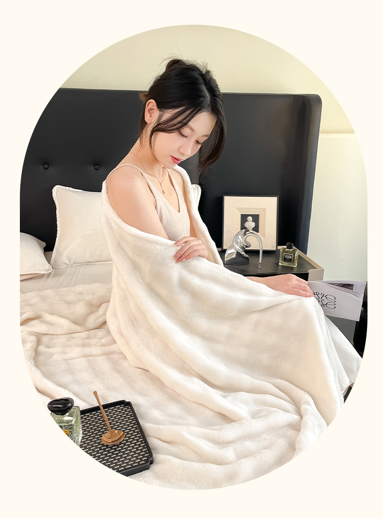 一帆毯业 免费压缩抽空 300克 仿兔毛泡泡绒高克重法莱绒牛奶绒珊瑚绒兔兔卷边毛毯(外贸跨境供货) 奶白