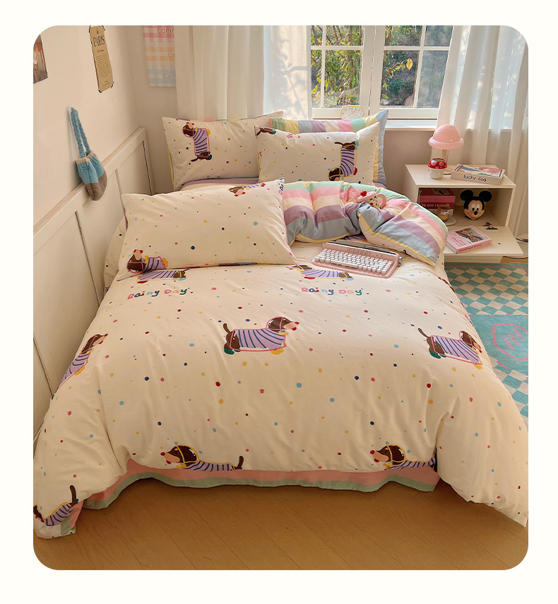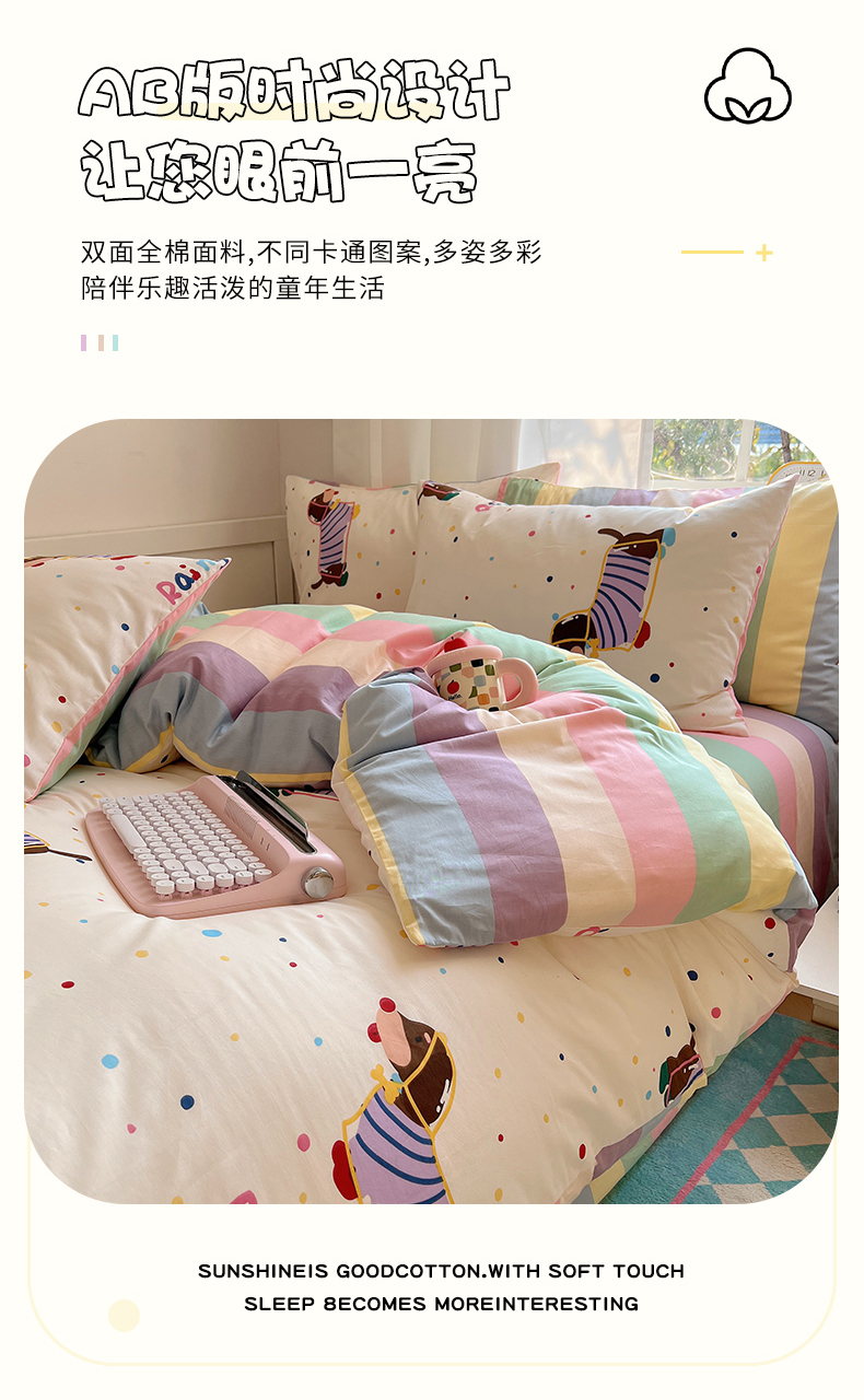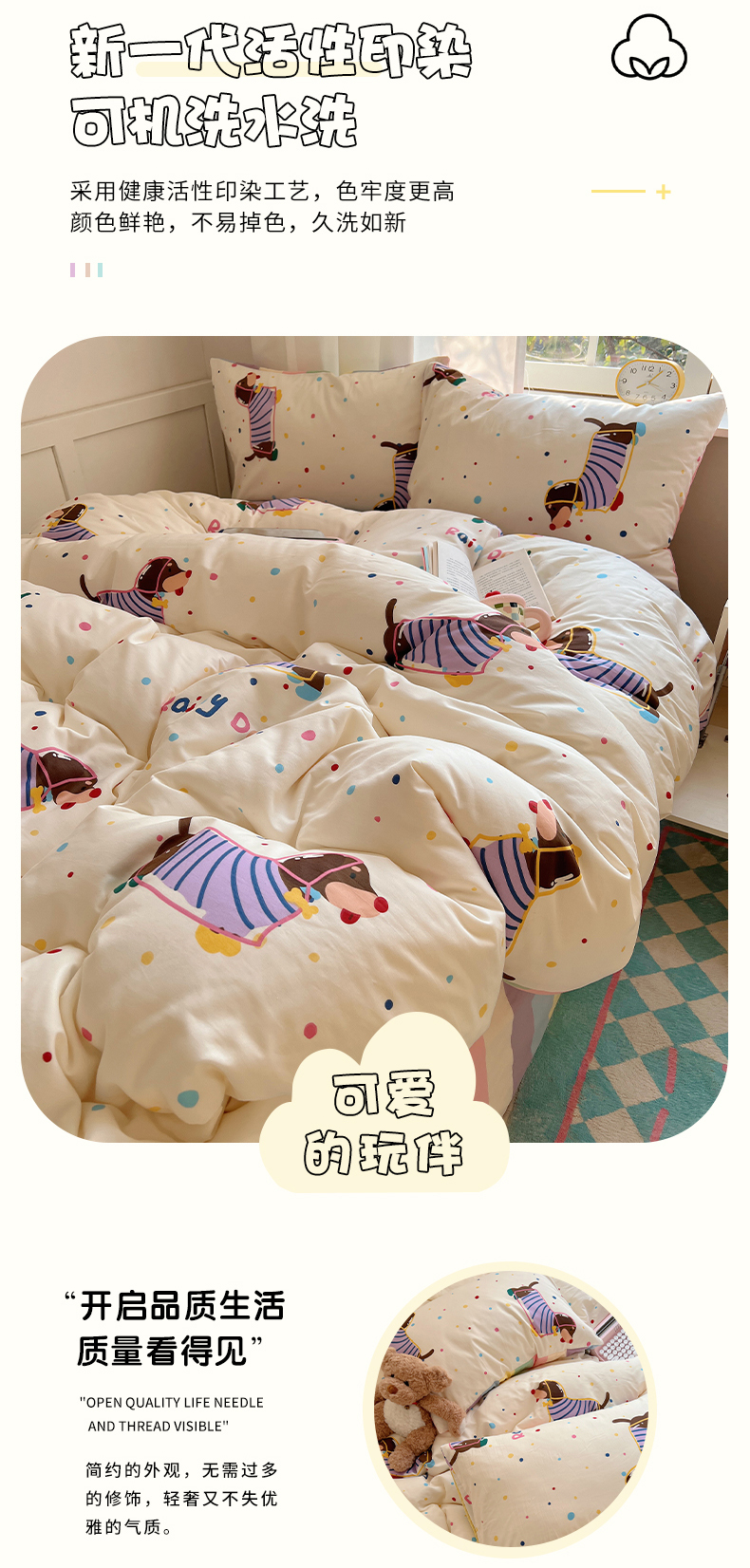 (总)瑞莱 2025夏季新款全棉纯棉有氧双层纱四件套,格子狗(粉),春日女孩,格子狗(蓝),功夫熊猫,何枝小兔,花园小狗,萝莉兔,萌萌狮,梦幻花园兔,少女象(绿),熊孩子,原宿小兔