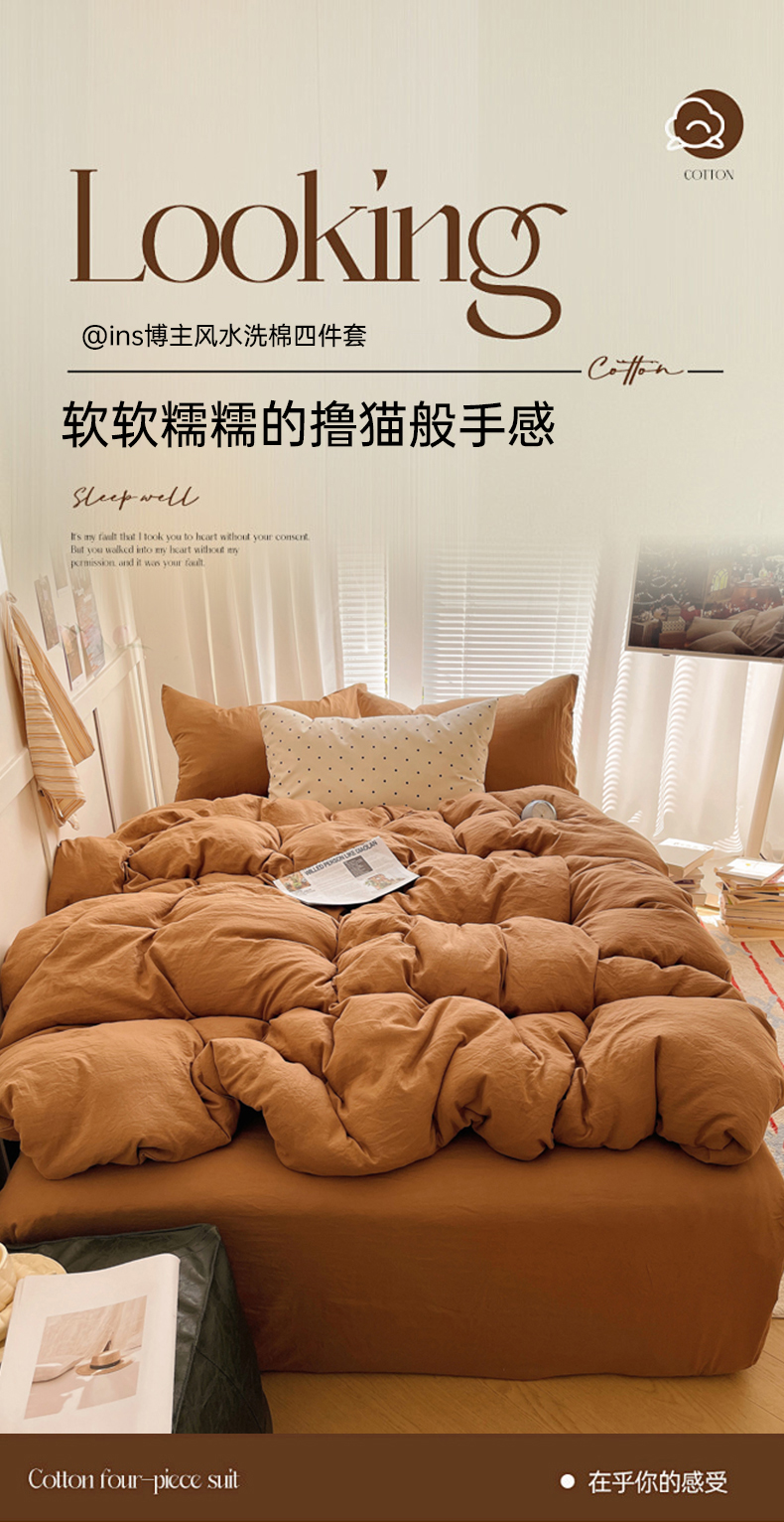 当前位置: 91家纺网 > 商品网购 > 床品套件 > 四件套 > 水洗棉四件套 > 阿曼达 2024最新款奶fufu-ins博主风纯色、混搭、双色软软糯糯亲肤透气水洗m四件套(软糯舒适,非市场普通面料!!!)水洗m-棕色