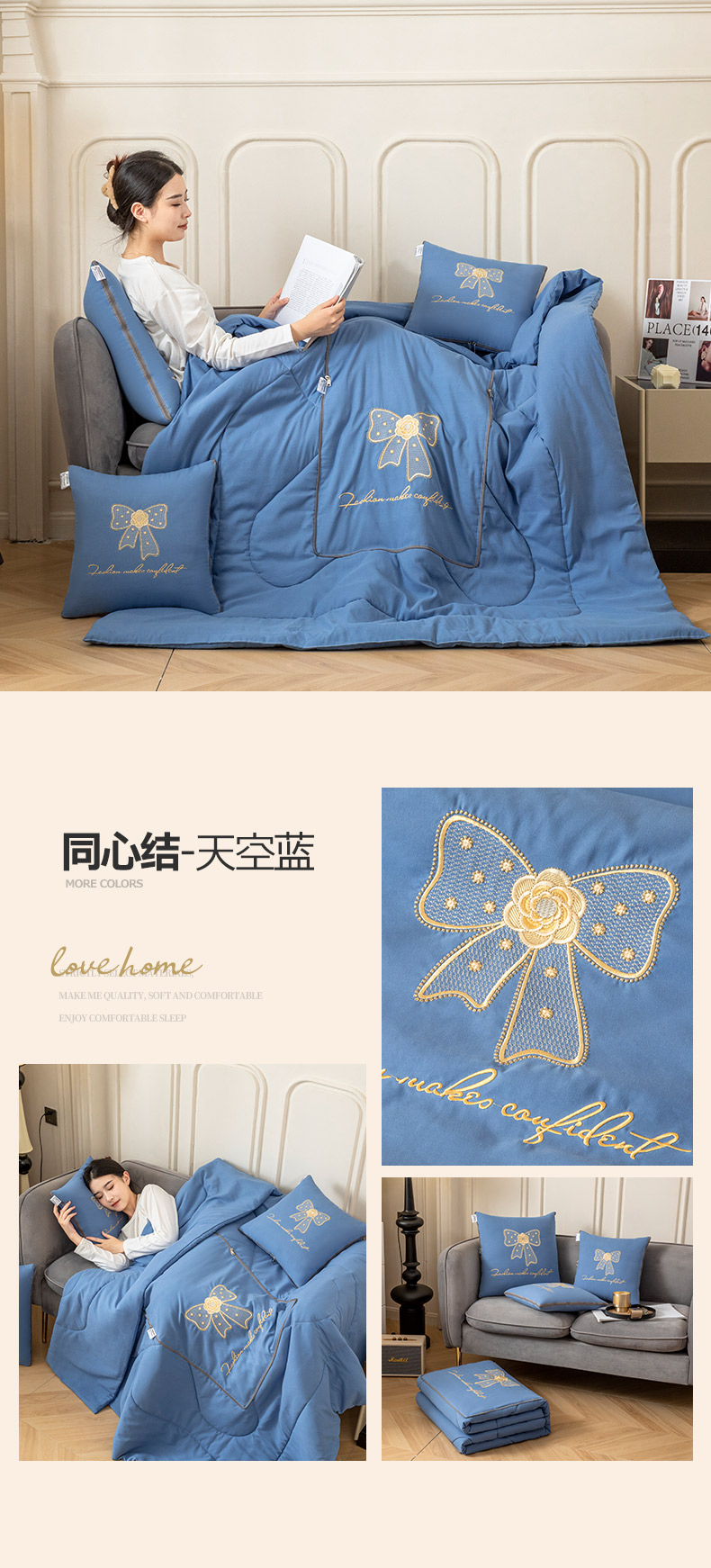 商品名称:雷人家纺 2023新款同心结系列刺绣多功能抱枕被 同心结-天空蓝