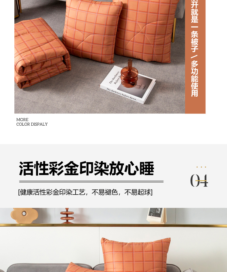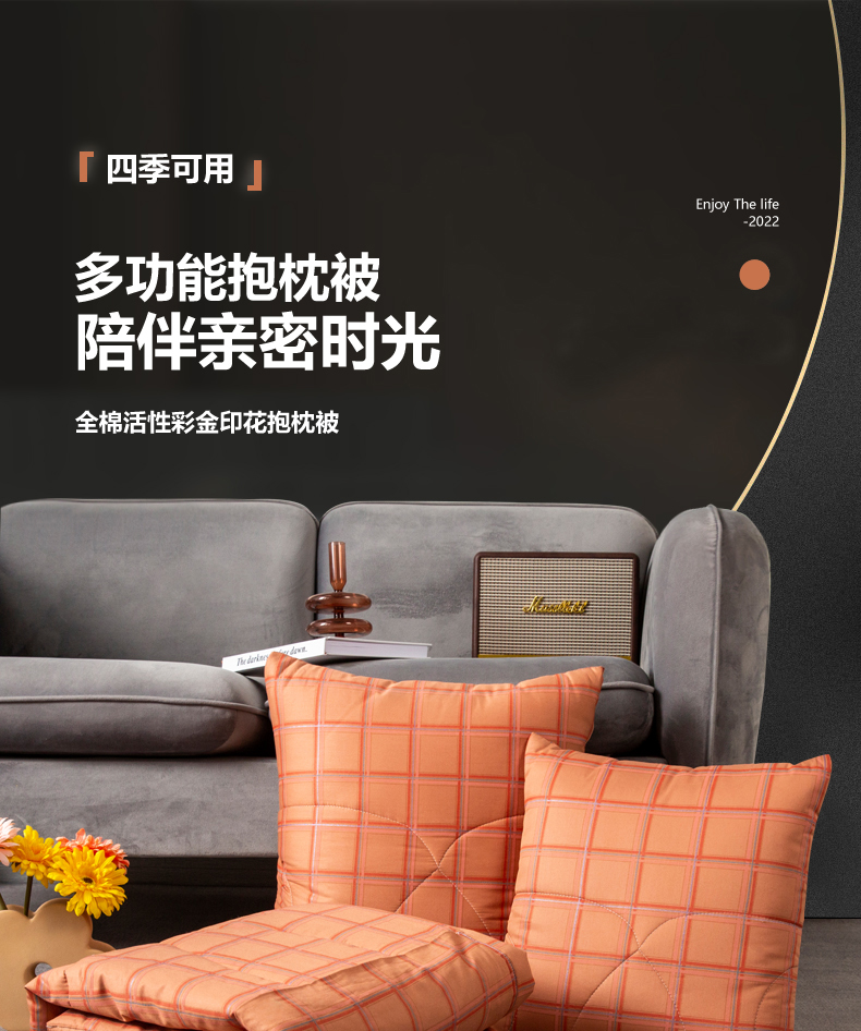 (总)雷人家纺 2022新款全棉13376彩印印花烫金抱枕被