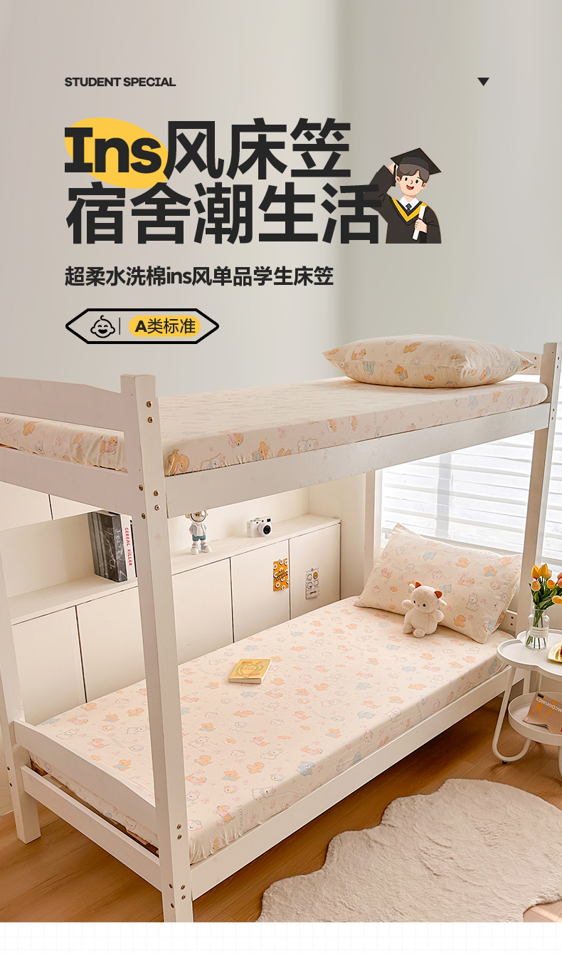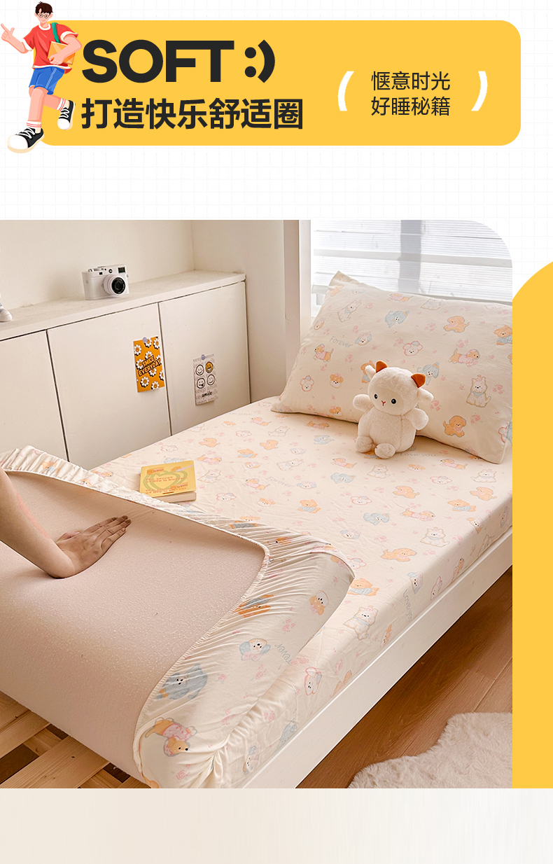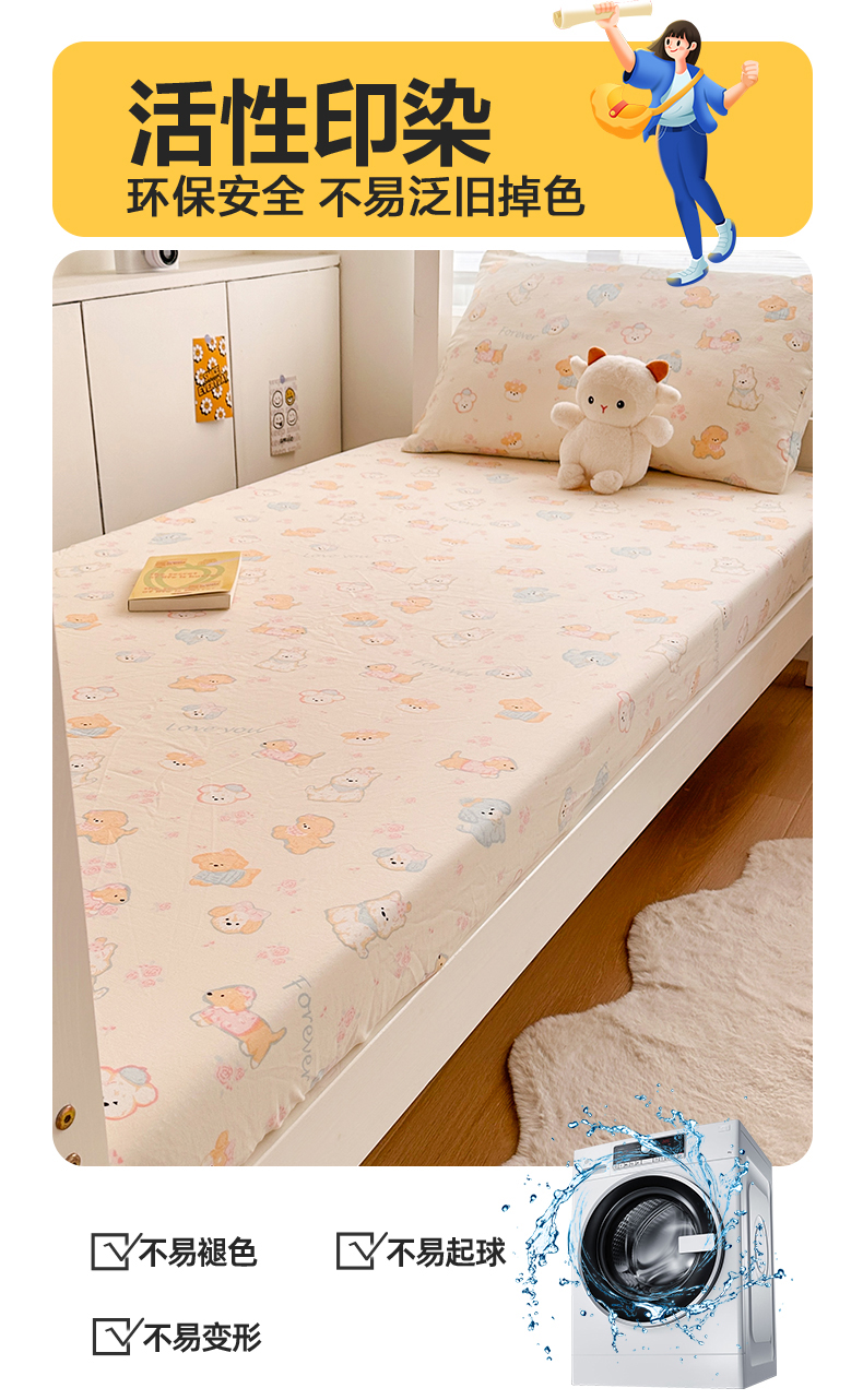 多品家纺 2025新款超柔水洗棉ins风学生宿舍单品床笠 萌宠