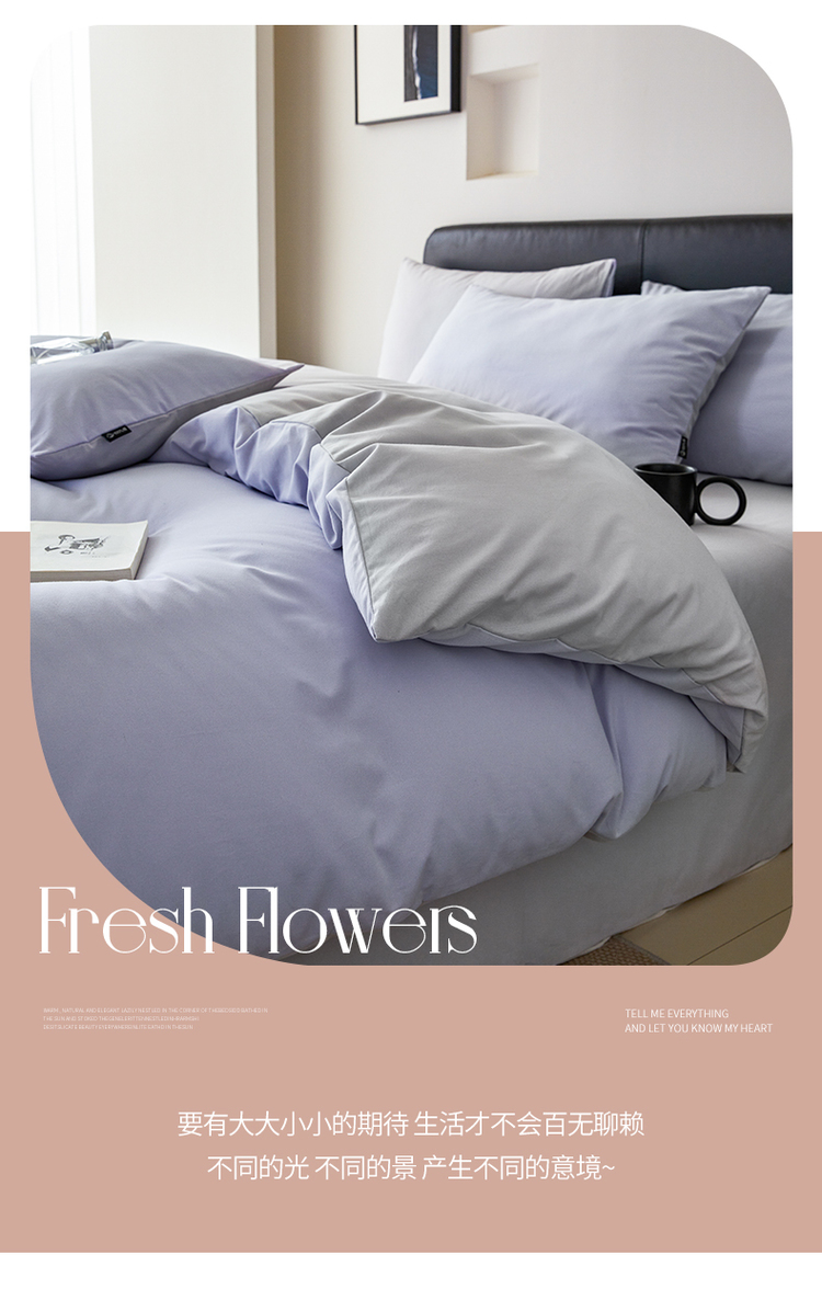 当前位置: 91家纺网 > 商品网购 > 床品套件 > 四件套 > 磨毛活性四件套 > (优质买家秀热卖不断货)A类母婴级100支纯棉全棉磨毛四件套全棉纯棉全棉磨毛四件套纯棉全棉磨毛四件套 优雅紫+淡雅灰